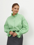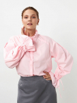Легкая, воздушная, романтичная блузка-рубашка, с объёмными нарядными рукавами. Функциональные резинки на запястьях обеспечивают удобство и регулировку длины рукава. Модные манжеты придадут особый шик вашему образу. Воротник-стойка расширен, что обеспечивает удобство и комфорт, а также идеальную посадку на все фигуры, а изящная рюша сделает образ законченным.