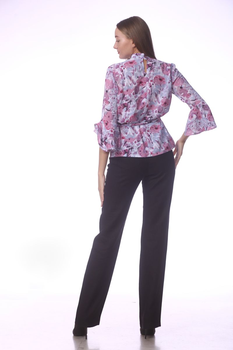 Описание: Блуза с поясом, воротник стойка, рукав с воланом, штапель,
