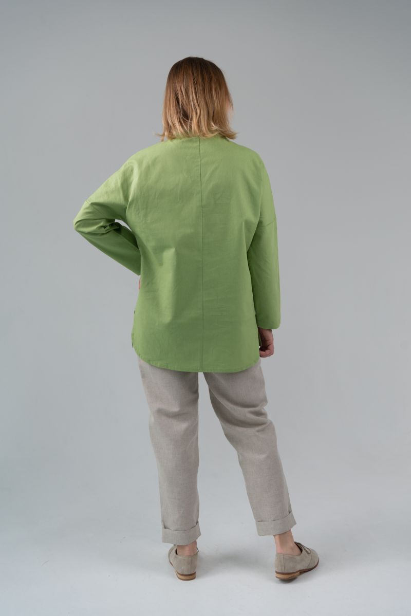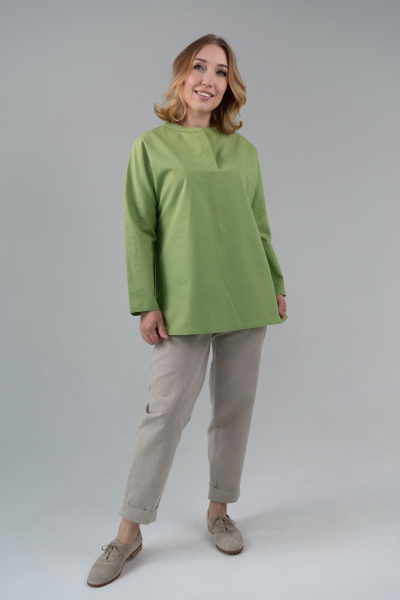 Описание: Блуза с длинным рукавом, линия плеча спущена, низ закругленный.