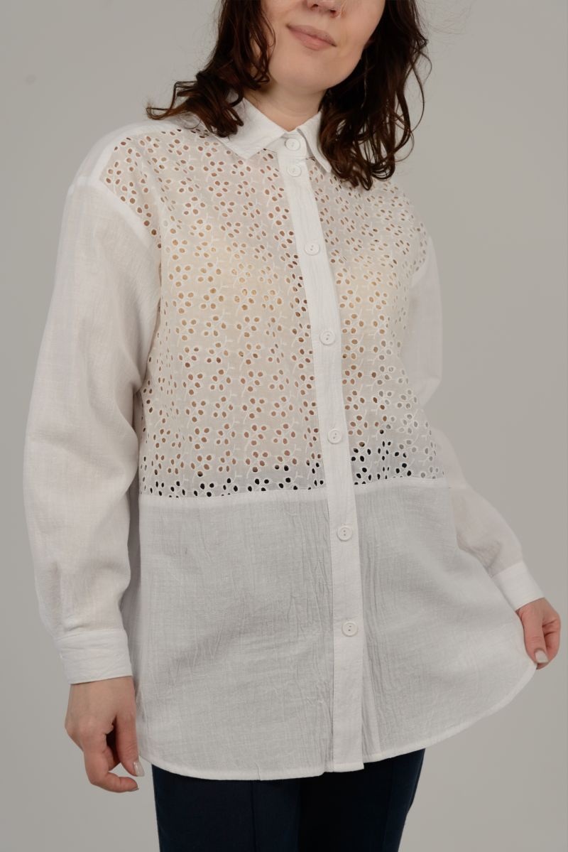Описание: Блуза с длинным рукавом, воротник, застежка на пуговицы,