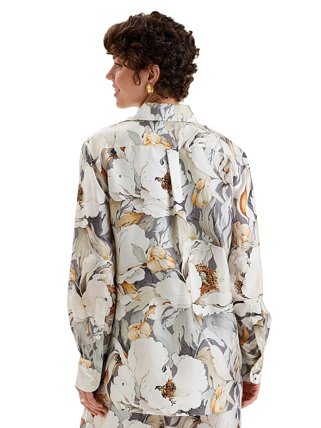 Шелковая блуза SILK – премиальная вещь для вашего безукоризненного образа, воплощение изысканности и элегантности. Изделие свободного кроя, классического силуэта, с отложным воротником, длинными рукавами, оформленными манжетами и скругленным низом, добавляющим легкости. Открытый нагрудный карман, перламутровые пуговицы из натуральных ракушек – детали, которые придают изделию особый шарм. Модель представлена в четырех монохромных расцветках: «шалфей», «шоколад», нежно-голубой и черный – и трех трендовых природных принтах: Spring Garden, Toile de Jouy и Peonies.