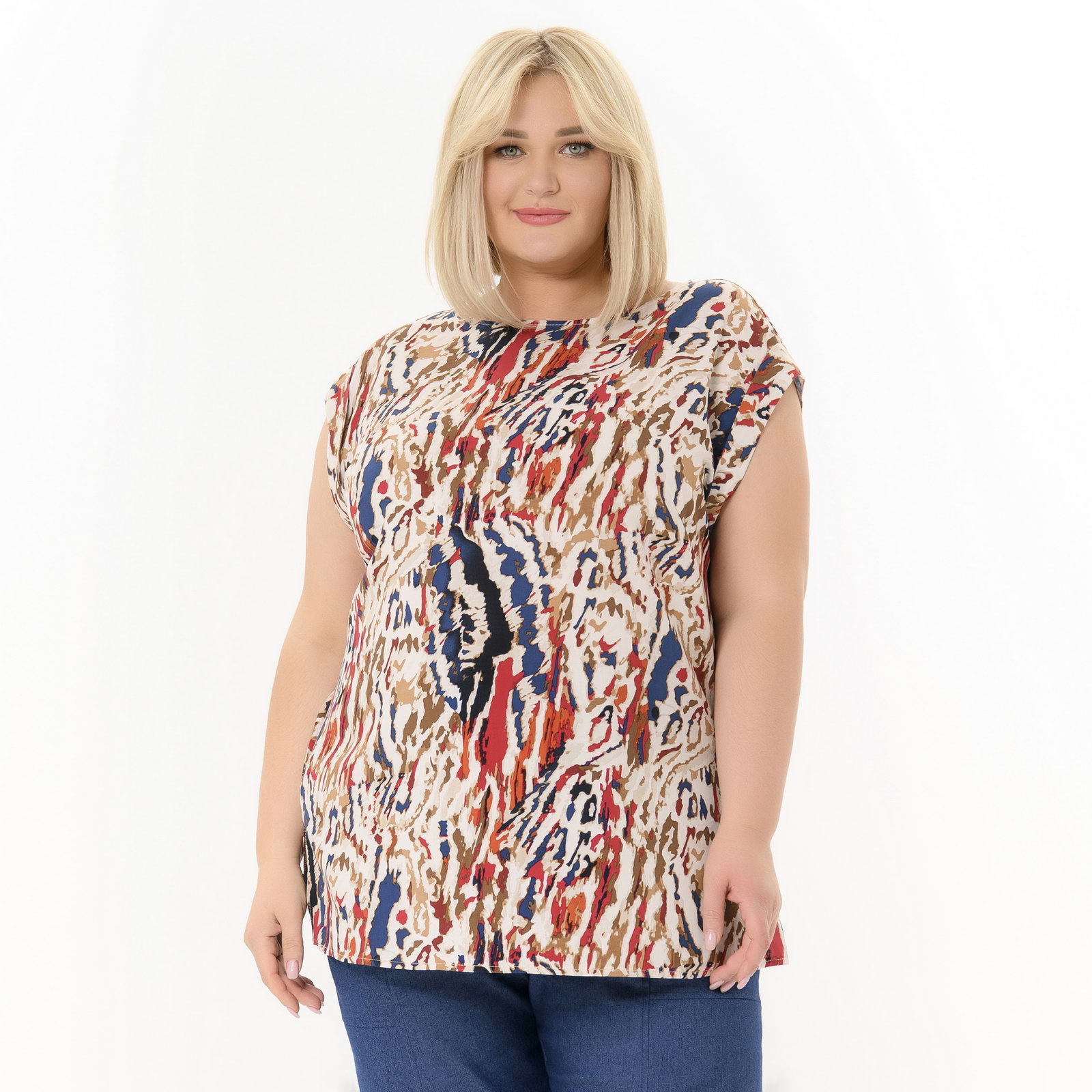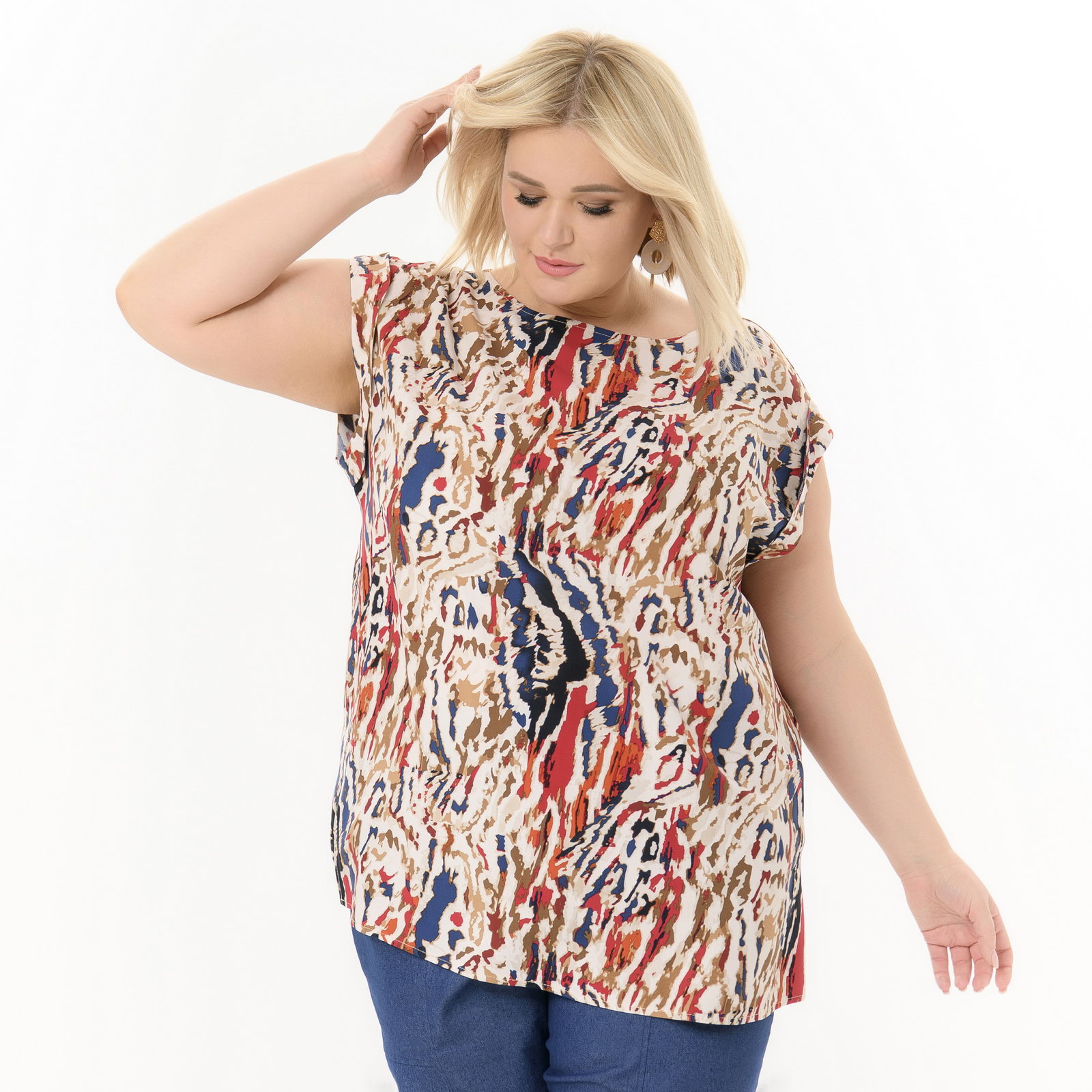 Блуза со спущенным плечом, штапель, принт "натуральный"