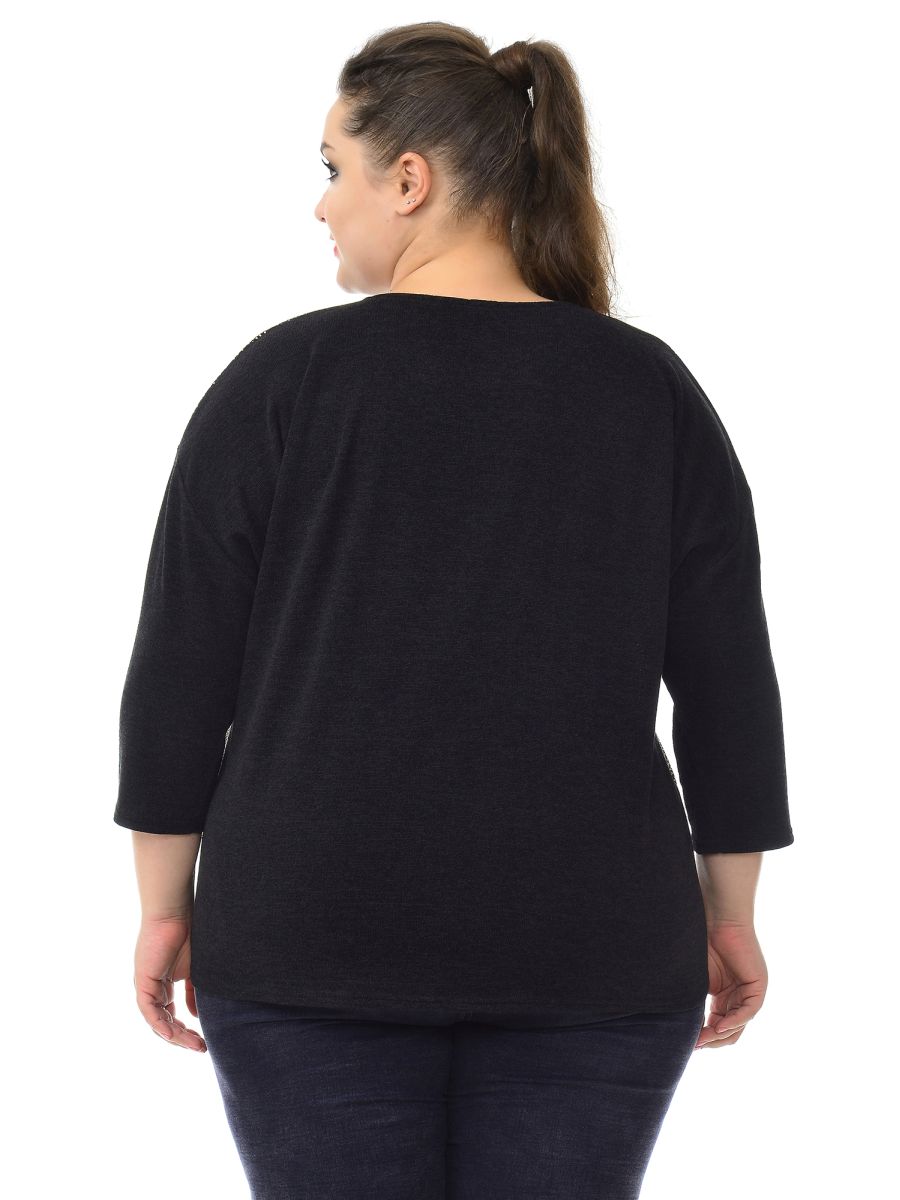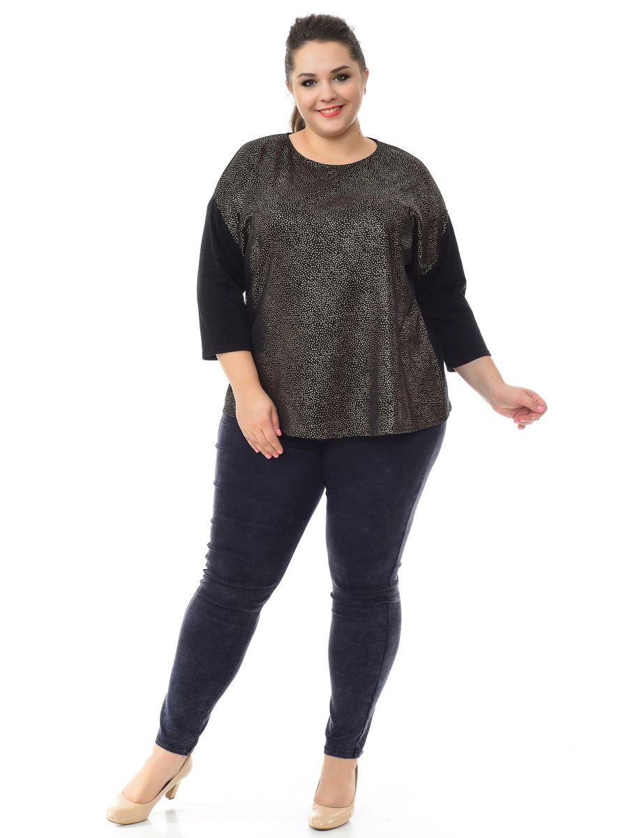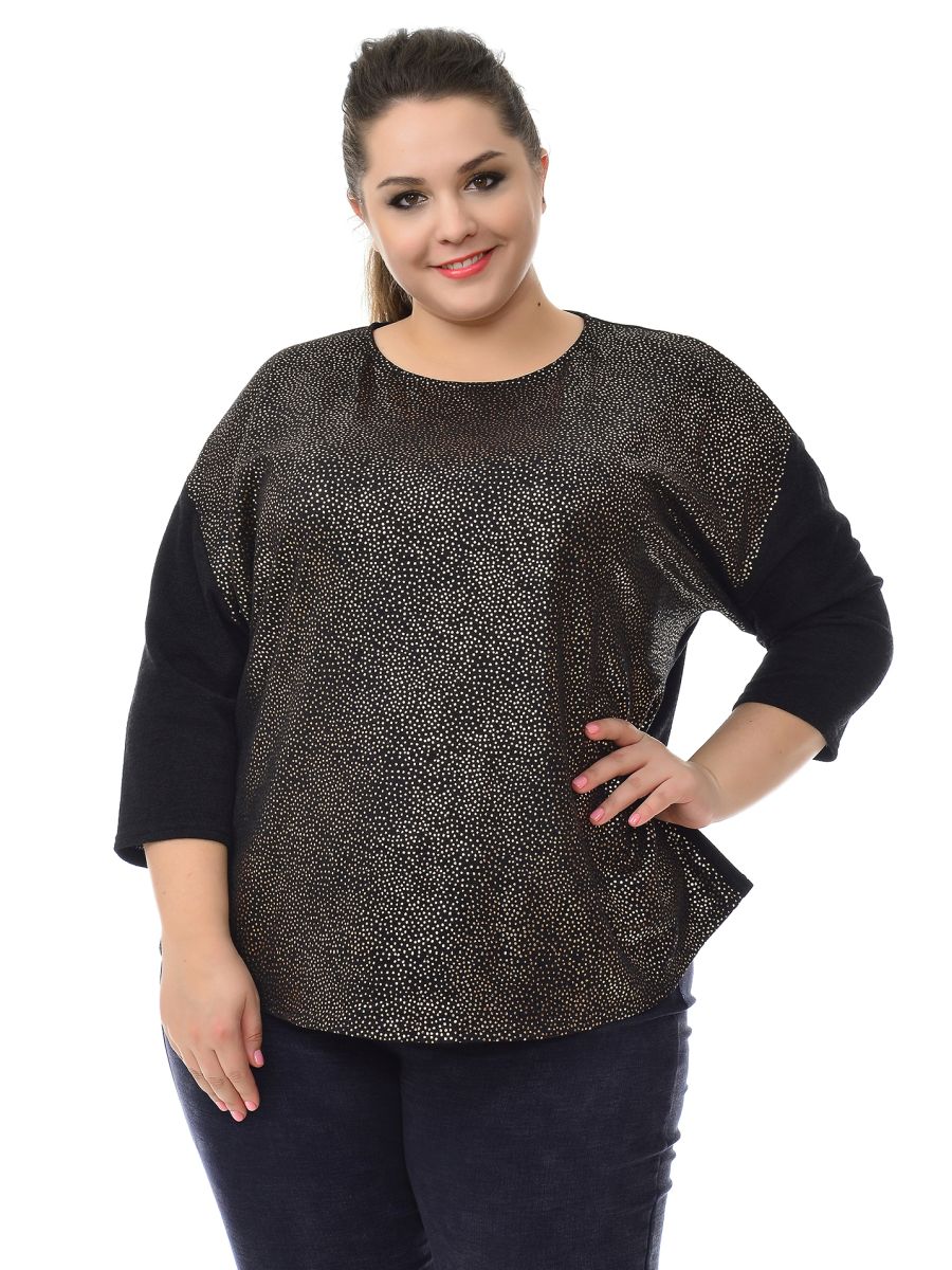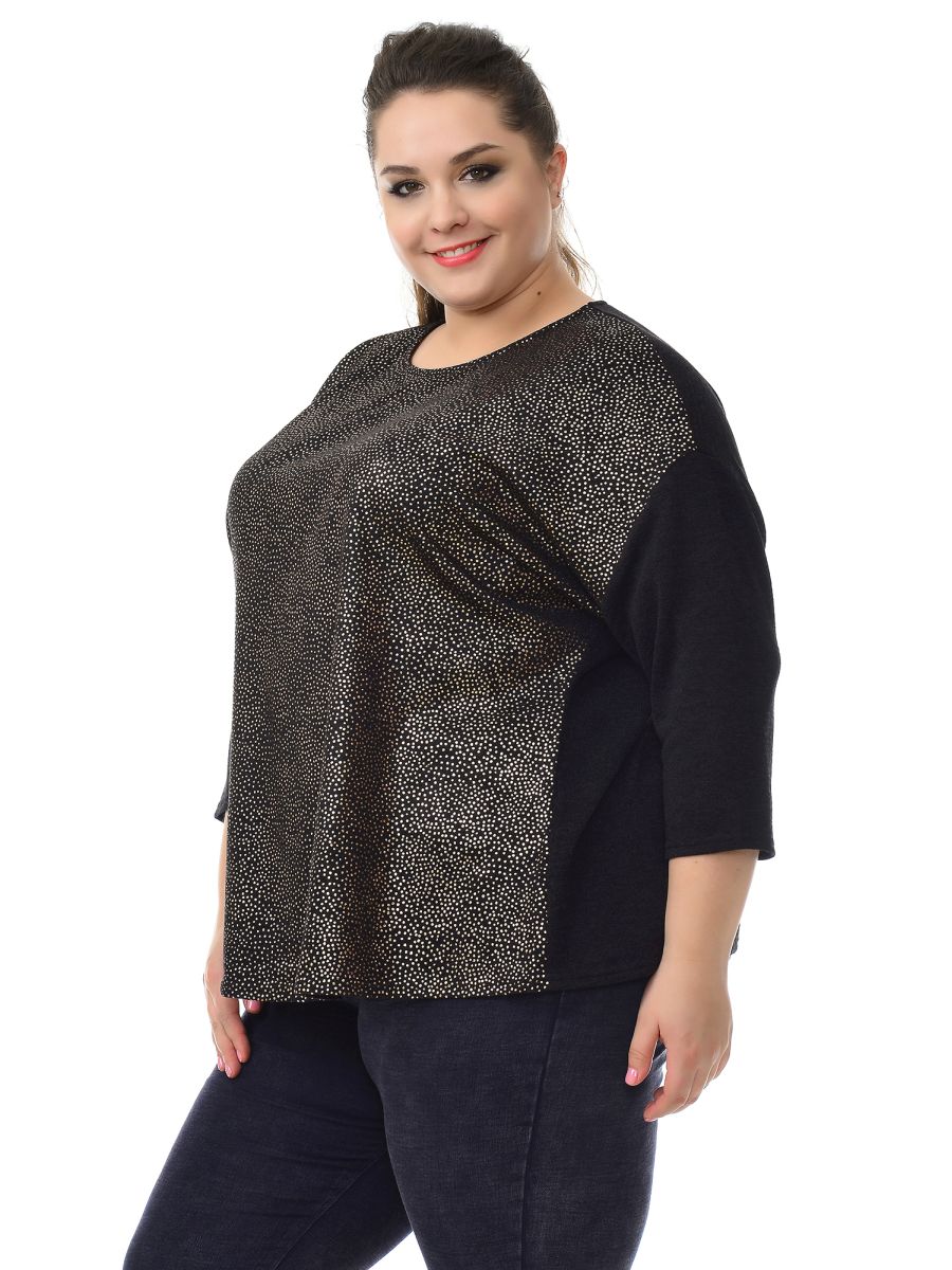 Блуза свободная из искуственной ангоры. Передняя часть блузы из ткани-компаньона с золотым напылением. Вырез горловины округлый. Рукав на основе цельнокроеного длиной 3/4.