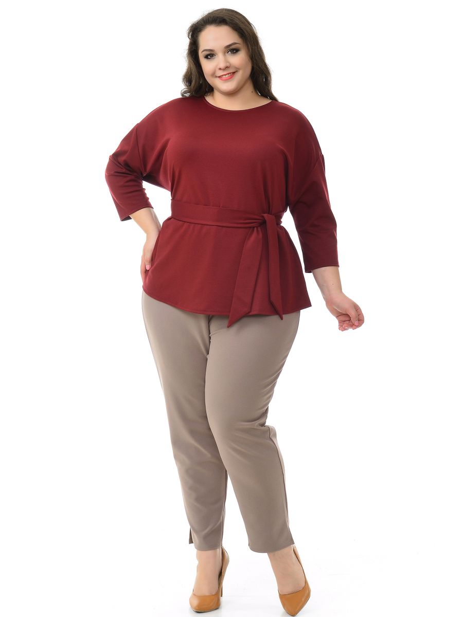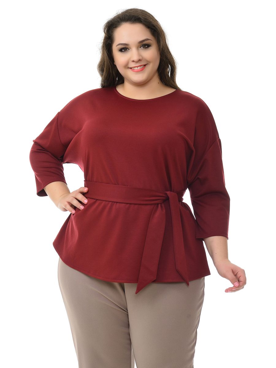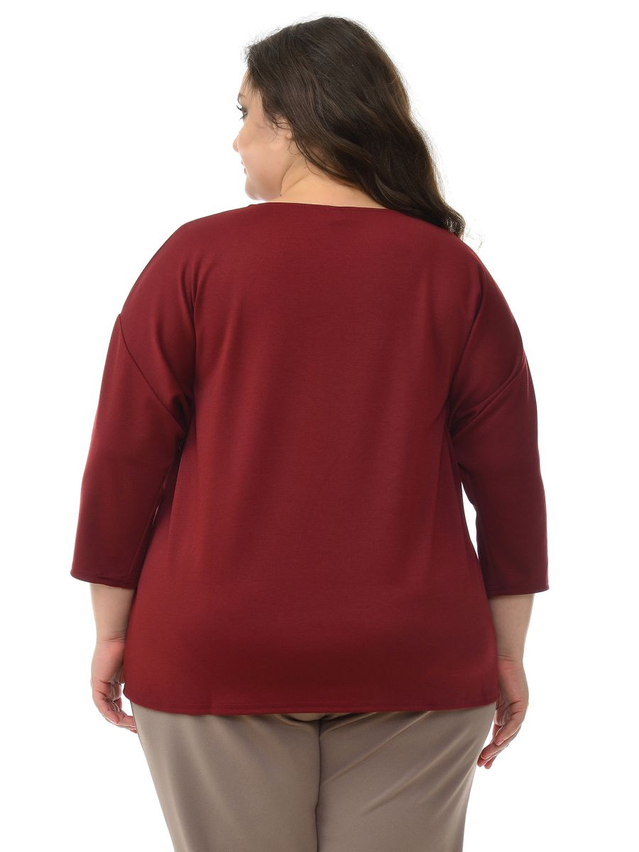 Блуза свободная из однотонного крепа с эластаном. Вырез горловины округлый. Рукав на основе цельнокроеного длиной 3/4.