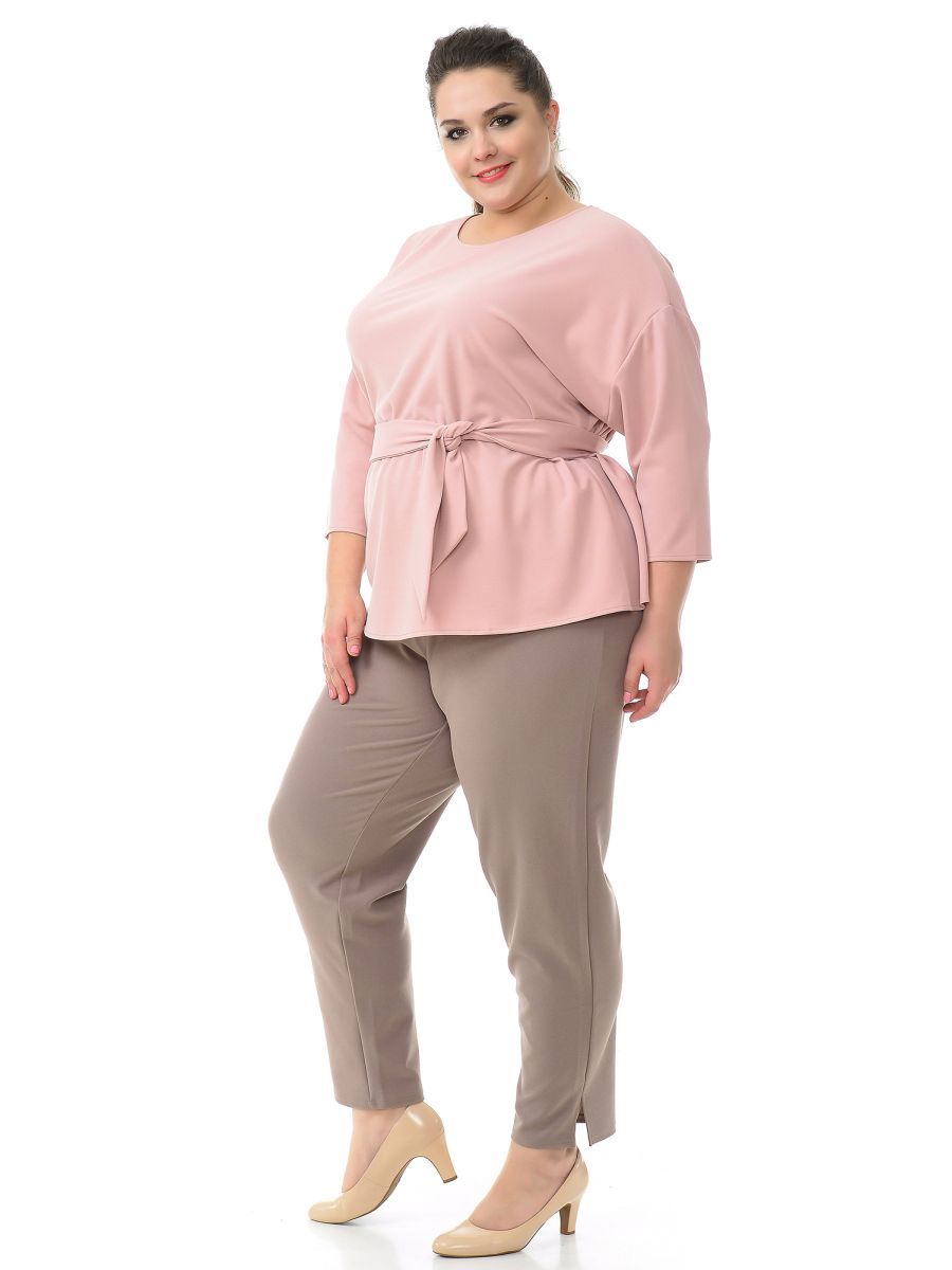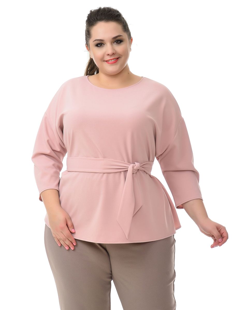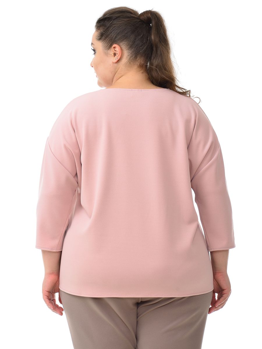 Блуза свободная из однотонного крепа с эластаном. Вырез горловины округлый. Рукав на основе цельнокроеного длиной 3/4.