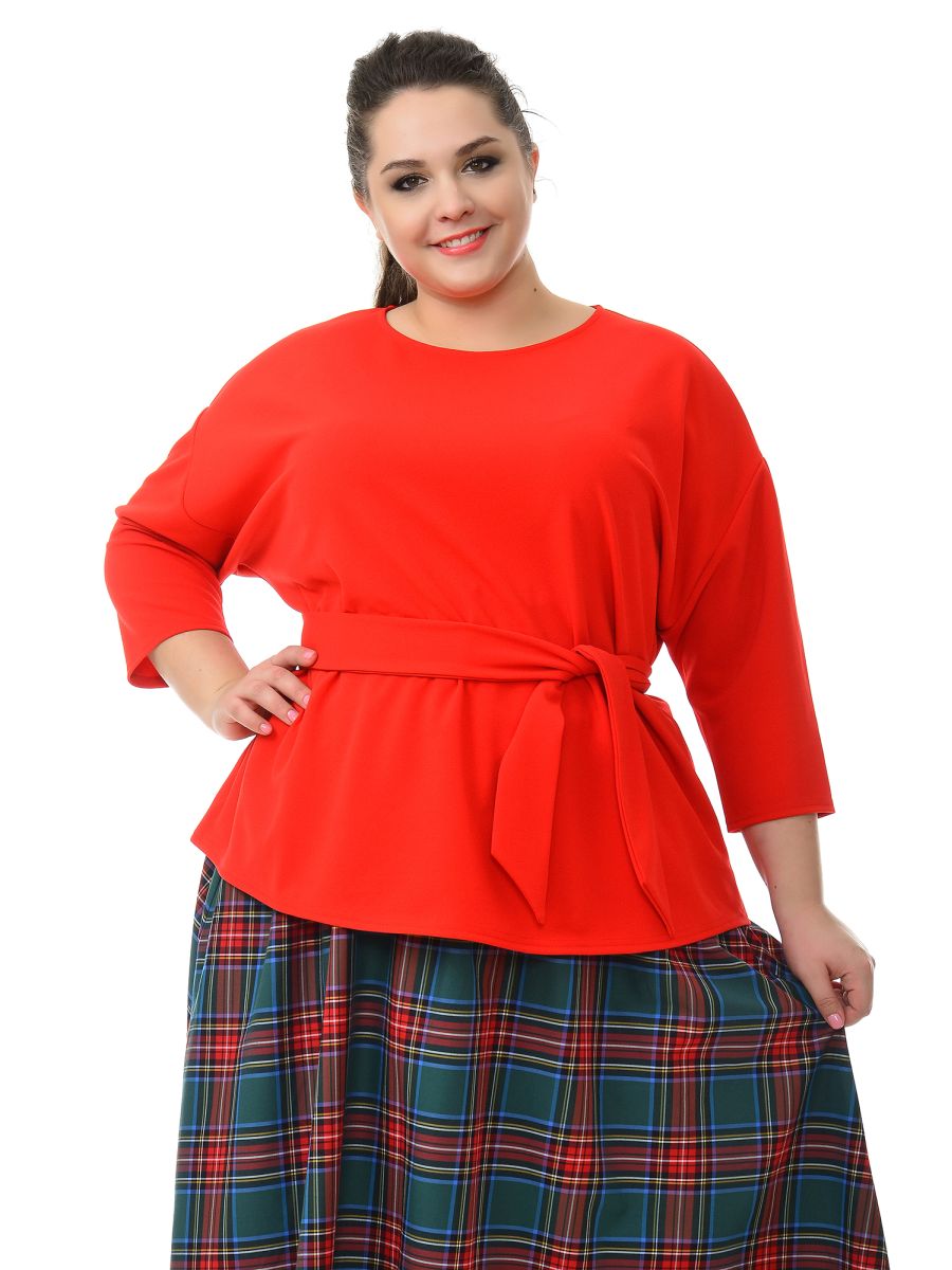 Блуза свободная из крепа с эластаном, красная