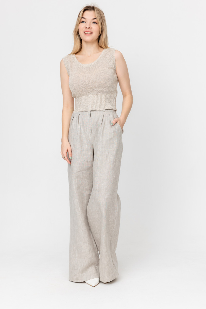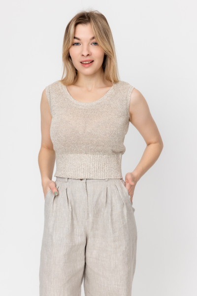 Топ укороченный 100% лен, силуэт прямой.