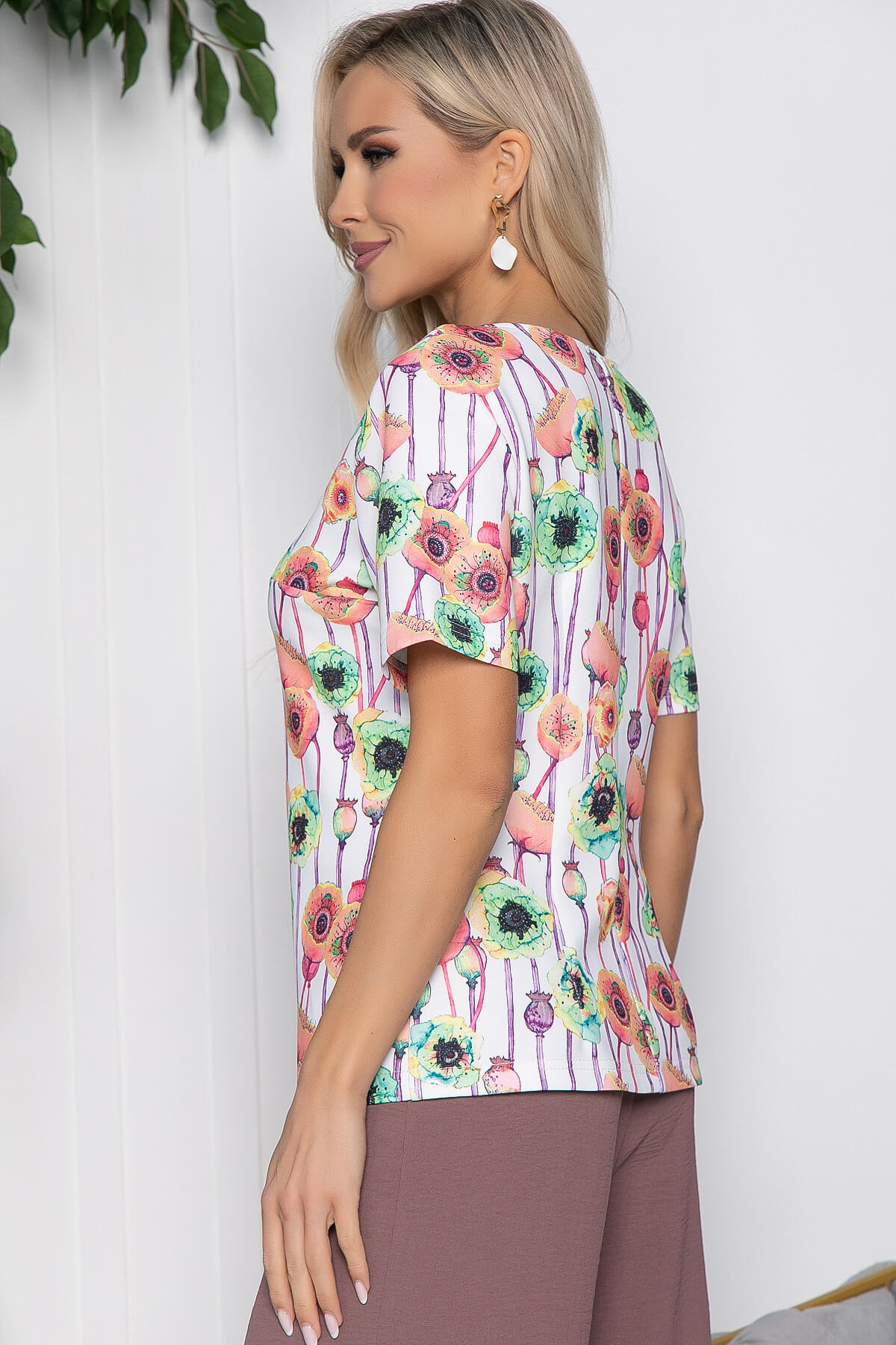 Яркая блузка прилегающего кроя с насыщенным флористическим принтом. Прекрасно подойдет под однотонные джинсы, брюки или шорты. Дополните образ летней обувью и вы готовы к отличному дню!