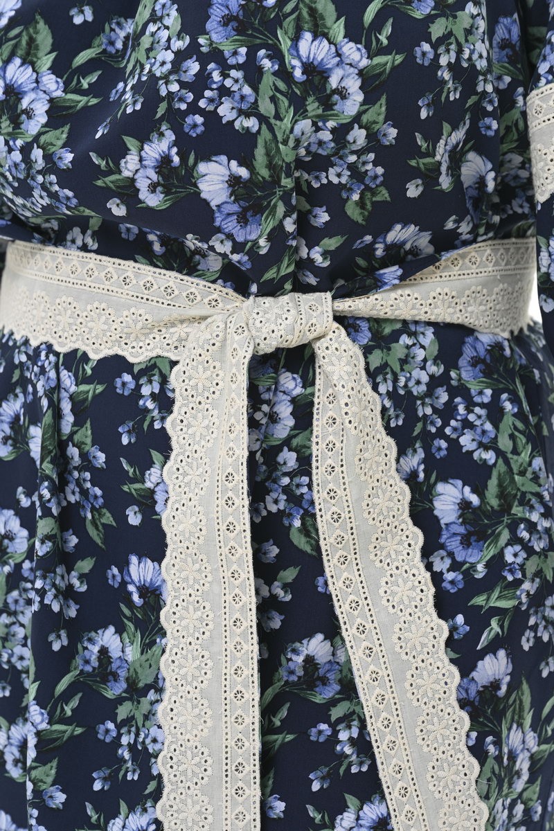 Блуза в стиле "кантри" с кружевной отделкой темно-синяя, принт цветочный
