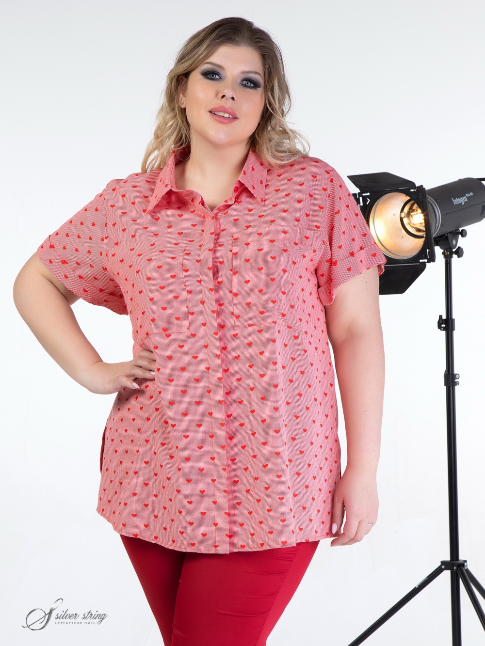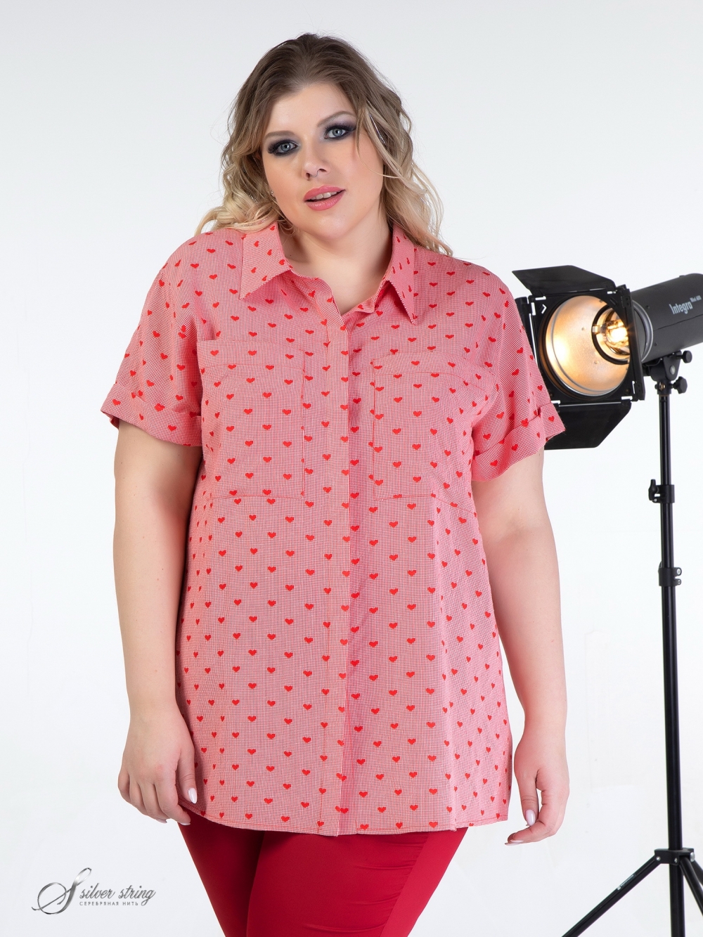 Современная блуза-рубашка прямого силуэта выполнена из вискозной ткани с легким «крэш» - эффектом. Модель распашная, с супатной застежкой на пуговицы и рубашечным воротником на стойке. Рукав втачной, длиной до локтя, с отворотом по низу. На полочке настрочены накладные нагрудные карманы. В боковых швах обработаны разрезы. Блуза выполнена с учетом особенностей фигуры дам нестандартных размеров, позволяет подчеркнуть их достоинства и завуалировать возможные недостатки.