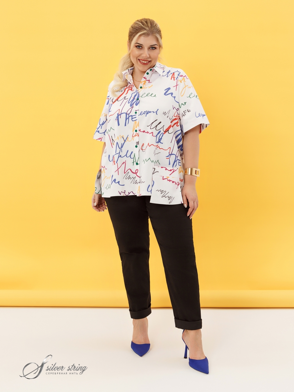 Эта комфортная Блузка-рубашка прямого силуэта в стиле «Casual» из эластичной ткани с высоким содержанием натурального волокна - идеальный выбор для повседневного ношения. Яркий абстрактный рисунок придаёт изделию современный и стильный вид. Рубашечный воротник на стойке и кокетки на полочке и спинке придают элегантности. Удобство обеспечивается застежкой на пуговицы и практичным рукавом длиной за локоть. Эта Блузка-рубашка - отличный выбор для создания легкого и стильного образа.