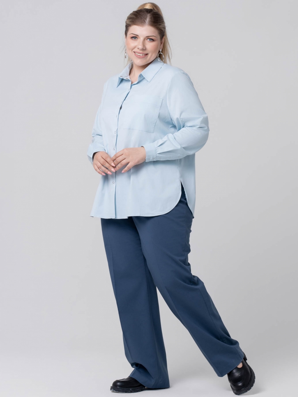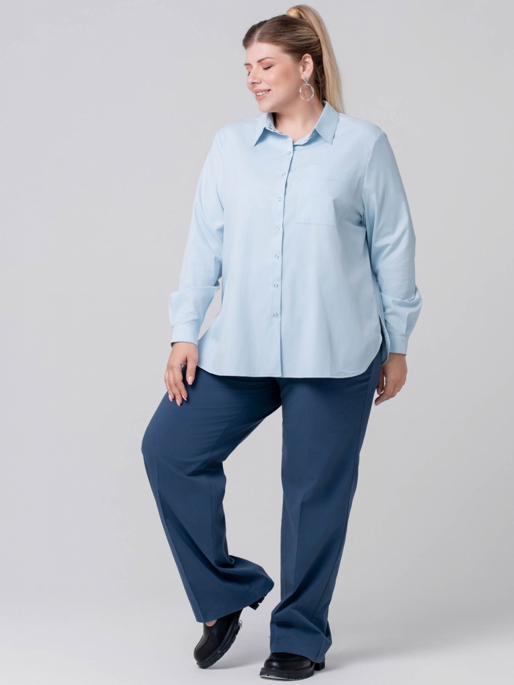 Стильная блузка-рубашка в стиле «Casual» изготовлена из смесовой эластичной ткани с высоким содержанием хлопка. Модель с застежкой на изящные кнопки и рубашечным воротником на стойке. Рукав втачной, длинный, с притачной манжетой по низу. На кнопки застегивается манжета и высокая шлица на рукаве, что делает изделие более элегантным. На спинке расположена декоративная нашивка с фирменным логотипом-аббревиатурой. В боковых швах обработаны разрезы скругленной формы, которые добавляют удобства и свободы движений. Эта блузка - идеальный выбор для создания делового и стильного образа на каждый день!