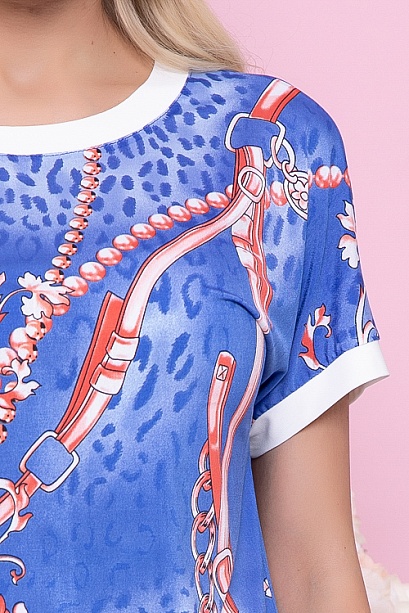 Блузка из трикотажного полотна с контрастной отделкой,с цельнокроеными рукавами на притачном поясе.