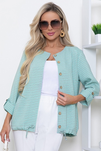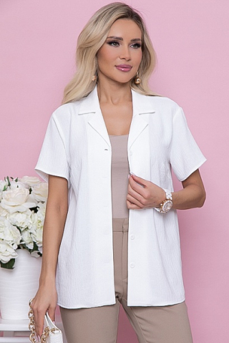 Блузка из текстильного полотна с центральной застежкой на петли и пуговицы.