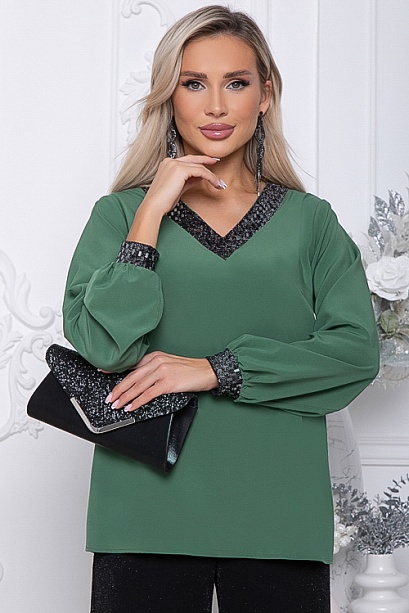 Блузка из текстильного полотна  с V-вырезом горловины.