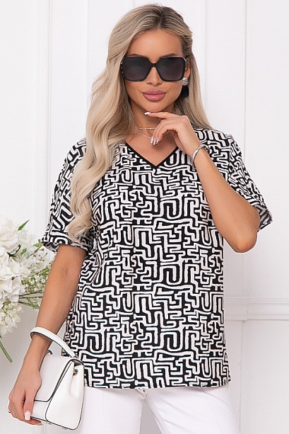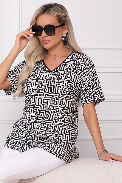 Блузка из комфортного текстильного полотна  свободного силуэта с цельнокроеными рукавами,V-вырезом горловины и разрезами в боковых швах.