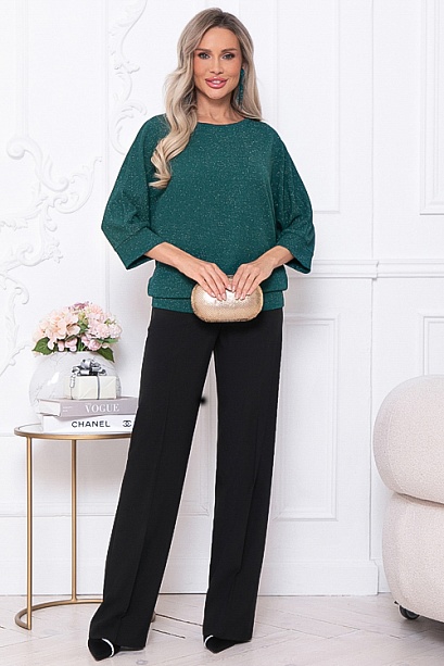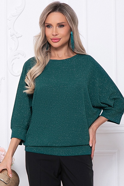 Блузка из трикотажного полотна с легким блеском с цельнокроеными рукавами.