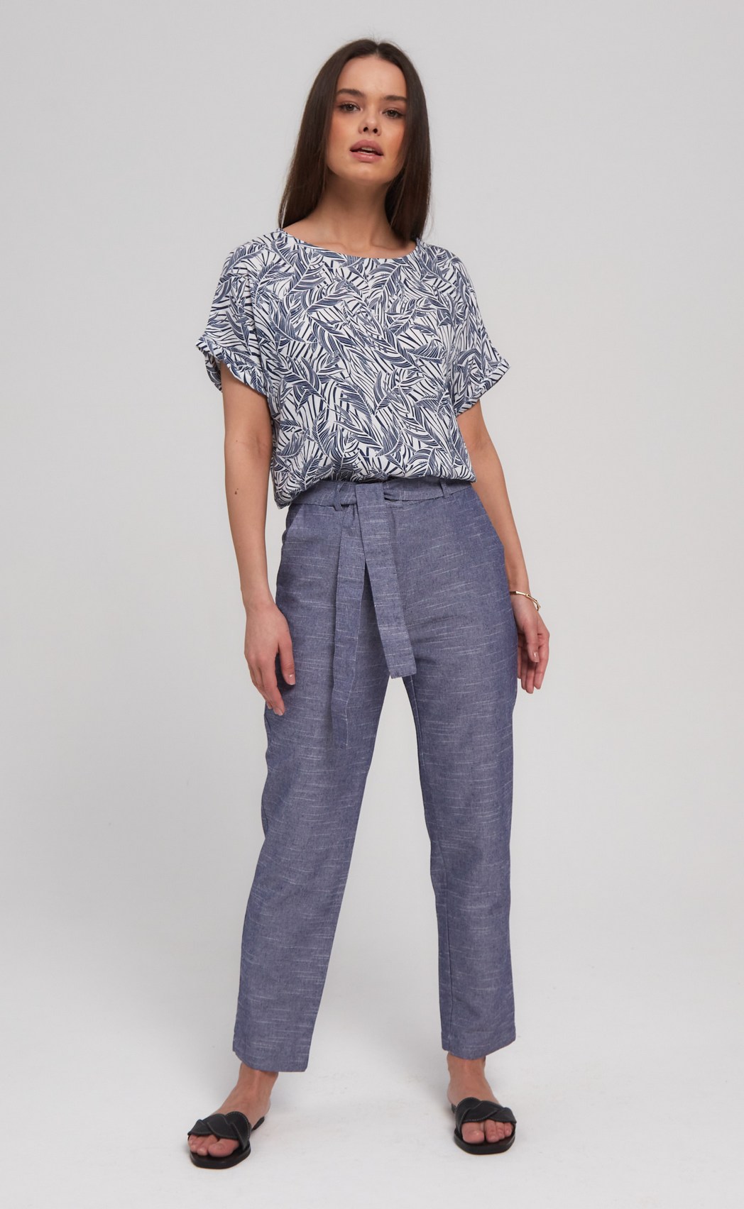 Блузка женская летняя Fine Joyce из ECO COLLECTION из ткани с утонченным принтом. Блузка хлопок женская, свободный крой, округлый воротник, свободные короткие рукава со спущенной линией плеча. Блузка оверсайз с коротким рукавом выполнена из высококачественной ткани: 65% хлопок, 35% модал. Свободный крой легко садится по любой фигуре женщин и девушек, не сковывает движения, а тонкая натуральная ткань обеспечивает свежесть и комфорт в теплую погоду. Блузка летняя женская выглядит просто и одновременно стильно. Блузка летняя с коротким рукавом благодаря своей монохромности и универсальности отлично сочетается с любыми брюками, в том числе с льняными брюками Fine Joyce. Легкая кофточка женская с коротким рукавом не мнется, не теряет форму. Блуза женская представлена в размерах: S, M, L, XL, XXL. Для Вашего удобства в карточке товара есть фото с мерками.