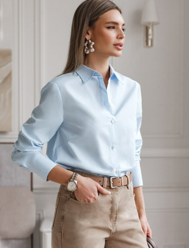 Рост 170, бюст 89, талия 63, бедра 92 Укороченная блузка с пышными рукавами-фонариками выполнена из легкого хлопкового поплина. Супатная застежка на пуговицы из натурального перламутра. Внизу кулиса с лентами из основного полотна. В изделии будет комфортно, даже в самое жаркое время года. Подходит для любой фигуры. Сочетается в костюме с кюлотами D24.233 и юбкой D26.179