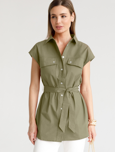 Блузка из легкого хлопкового поплина D29.264 светло-оливковый