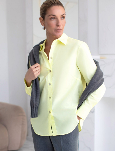 Блузка выполнена из премиального хлопкового поплина Лаконичная модель с высокими манжетами и пуговицами из натурального перламутра хорошо впишется в любой гардероб и внесет яркий летний акцент в образ. Натуральный состав ткани обладает высокой воздухопроницаемостью и гигроскопичностью. В изделии будет комфортно, даже в самое жаркое время года. Подходит для любой фигуры. На спинке фирменный логотип бренда.