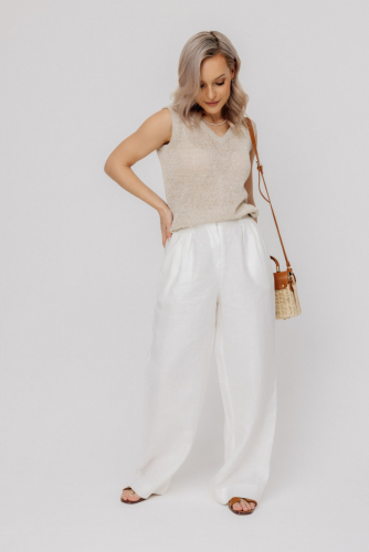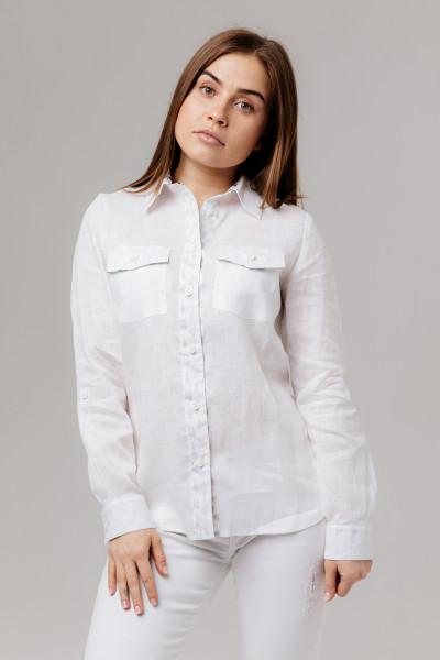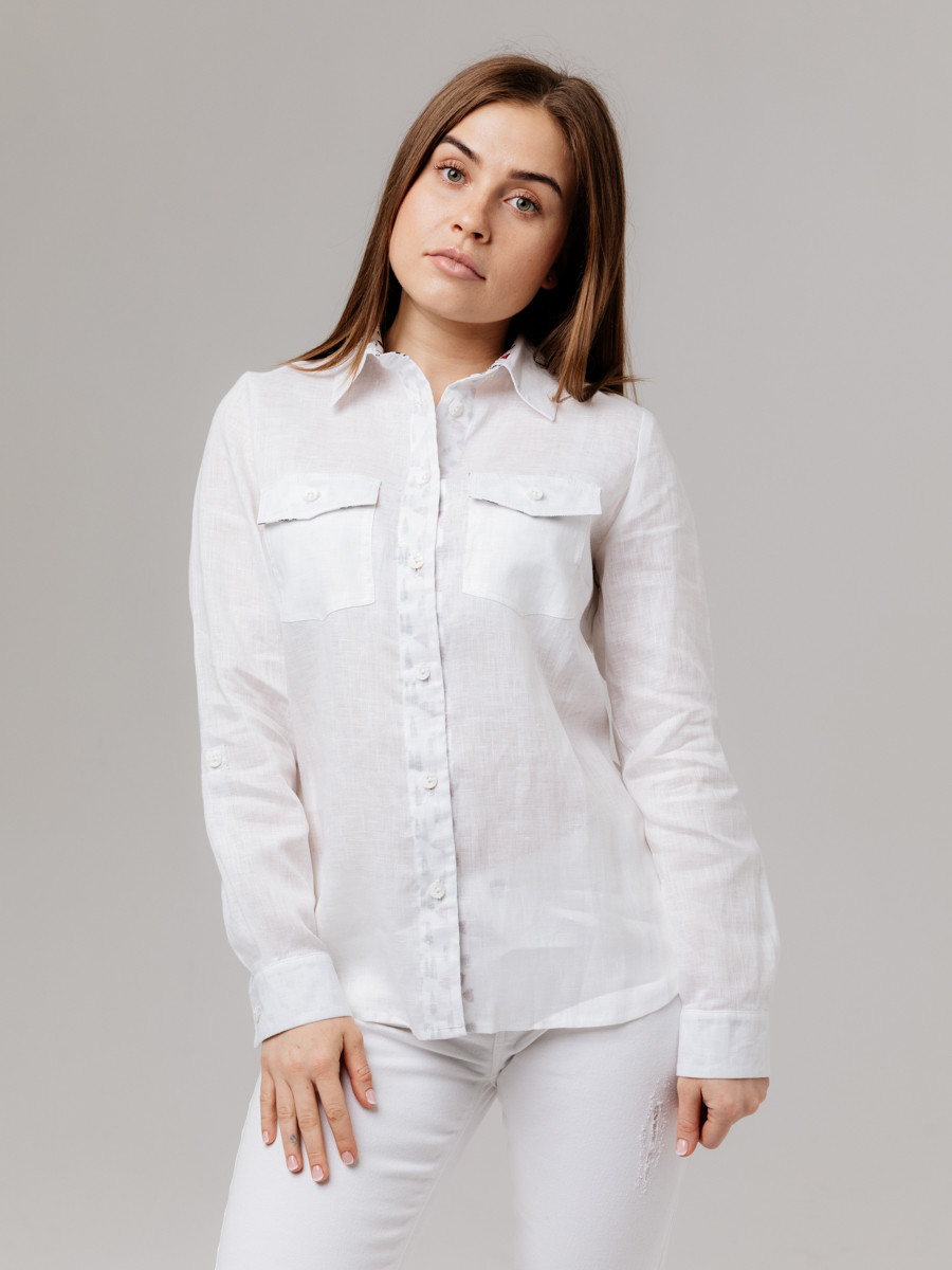 Блузка из льна 21-01 белый/огурцы