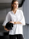 Блуза идет в размер (будет просторно), сидит хорошо, качество отличное, если не хочется посадки оверсайз, можно взять на шаг меньше