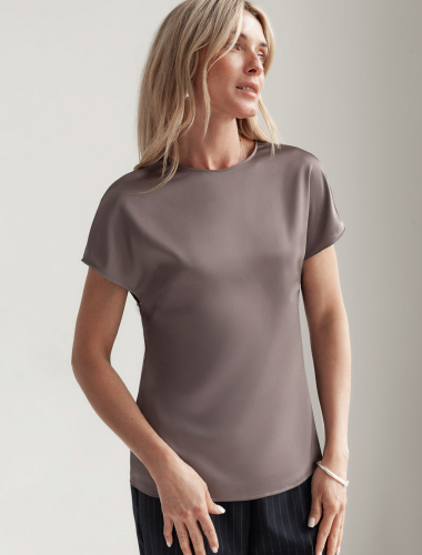 Сатиновая блузка с эластаном натруального белого цвета – воплощение элегантности и комфорта. Благородный блеск сатина добавляет образу шика, а эластичность материала гарантирует удобство при носке. Прямой силуэт блузки обеспечивает комфорт, а эластичность материала предотвращает деформацию. Застежка-планка с потайными пуговицами придает модели аккуратность. Универсальный вариант для casual-образов. натуральный белый