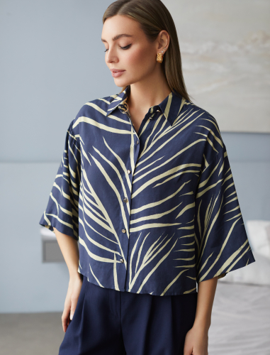 Блузка из вискозы с лиоцеллом D29.263 синий-белый