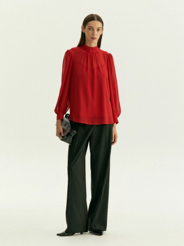 Блузка из вискозы с воротником-бантом , 55% полиэстер, 45% вискоза ,