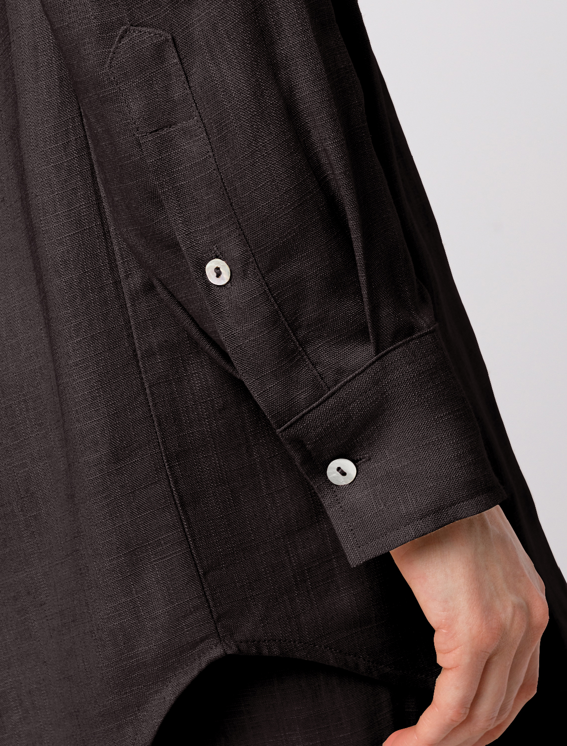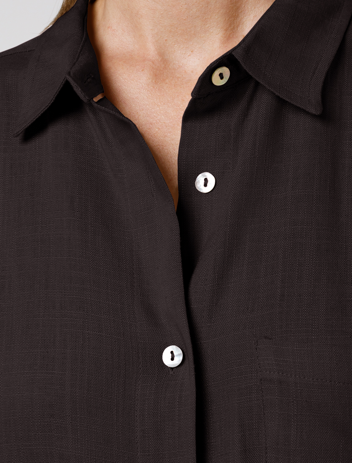 Блузка выполнена изо льна с вискозой. Модель с застежкой на пуговицы из натурального перламутра дополнена сольным карманом. Сочетается в костюме с брюками D24.222 и шортами D28.052. Ткань изящно струится, почти не мнется и сохраняет форму в течении долгого времени, обладает высокой воздухопроницаемостью, обеспечивая комфорт даже в самое жаркое время года. черный