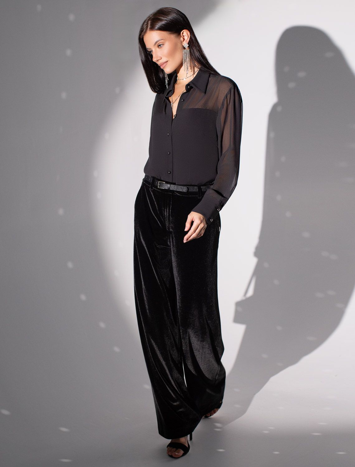Элегантная блузка черного цвета создана для женщин, которые ценят стиль и комфорт каждый день. Полупрозрачный шифон в верхней части блузки придает образу легкость и утонченность, подчеркивая индивидуальность в любой ситуации. Такая нарядная блузка моментально преобразит повседневный лук, делая его более выразительным и женственным. Плотная ткань блузки красиво струится по фигуре, подчеркивая женственность. Оригинальный крой и продуманная отделка позволяют сочетать блузку с брюками, юбками или джинсами — вы всегда будете выглядеть свежо и современно. Текстура ткани обеспечивает максимальное удобство, а полупрозрачная структура добавляет загадочности без излишней откровенности. Стильная модель подходит как для деловых встреч, так и для прогулок по городу или вечерних мероприятий. Благодаря универсальности фасона легко создаются новые комбинации в зависимости от настроения и случая.