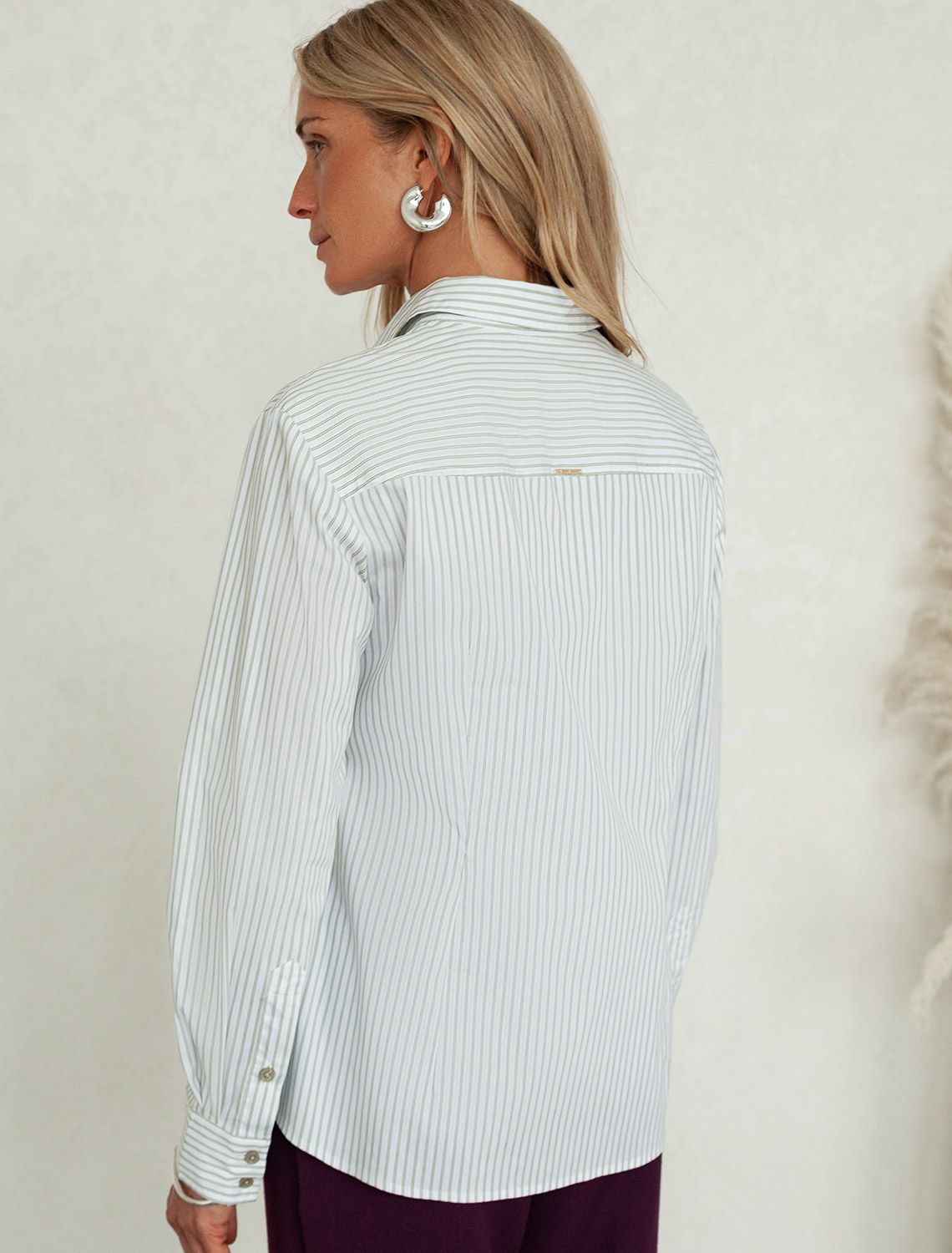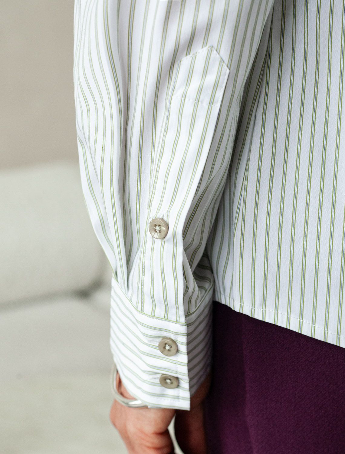 Блузка прилегающего силуэта из хлопка D29.273 белый-зеленый-голубой