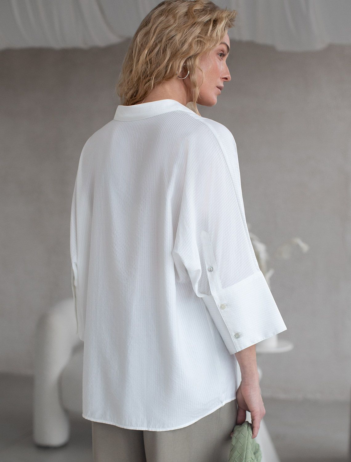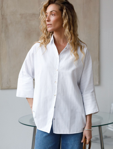 Стильная блузка белого цвета идеально держит форму и подчеркивает любую фигуру. Свободный крой с цельнокроеным рукавом 3/4 создает эффект легкой непринужденности и комфорта, а манжеты на рукавах добавляют аккуратности и завершенности образу. Отложной воротник придает блузке классическую нотку, которая гармонично сочетается в деловом образе. Вискоза гарантирует отличную посадку, подчеркивая достоинства и скрывая недостатки, при этом сохраняет свежесть на протяжении всего дня. Такая рубашка станет великолепным выбором для тех, кто ценит удобство и стиль одновременно. Модель удачно сочетается с различными предметами гардероба, позволяя создавать стильные и практичные образы в любую погоду.