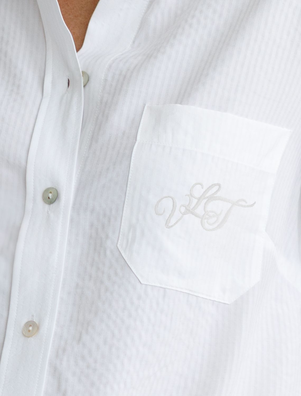 Легкая и комфортная блузка белого цвета из вискозы отлично садится по фигуре и дарит ощущение легкости в течение всего дня. Мягкая текстура материала не раздражает кожу, а вискоза гарантирует приятные тактильные ощущения. По низу предусмотрена кулиска, которая аккуратно фиксирует низ изделия, создавая стильный и современный силуэт. Такой элемент позволяет регулировать посадку, подчеркивая талию и добавляя эстетики в образ. Блузка украшена аккуратной вышивкой на кармане в виде логотипа бренда, что добавляет изысканности и демонстрирует ваше чувство вкуса. Рубашка выполнена с тщательным подходом к деталям, что делает ее универсальной для разных стилей — от повседневных до офисных. Такая блузка станет отличным выбором для тех, кто ценит комфорт и качество, не отказываясь от современной моды.