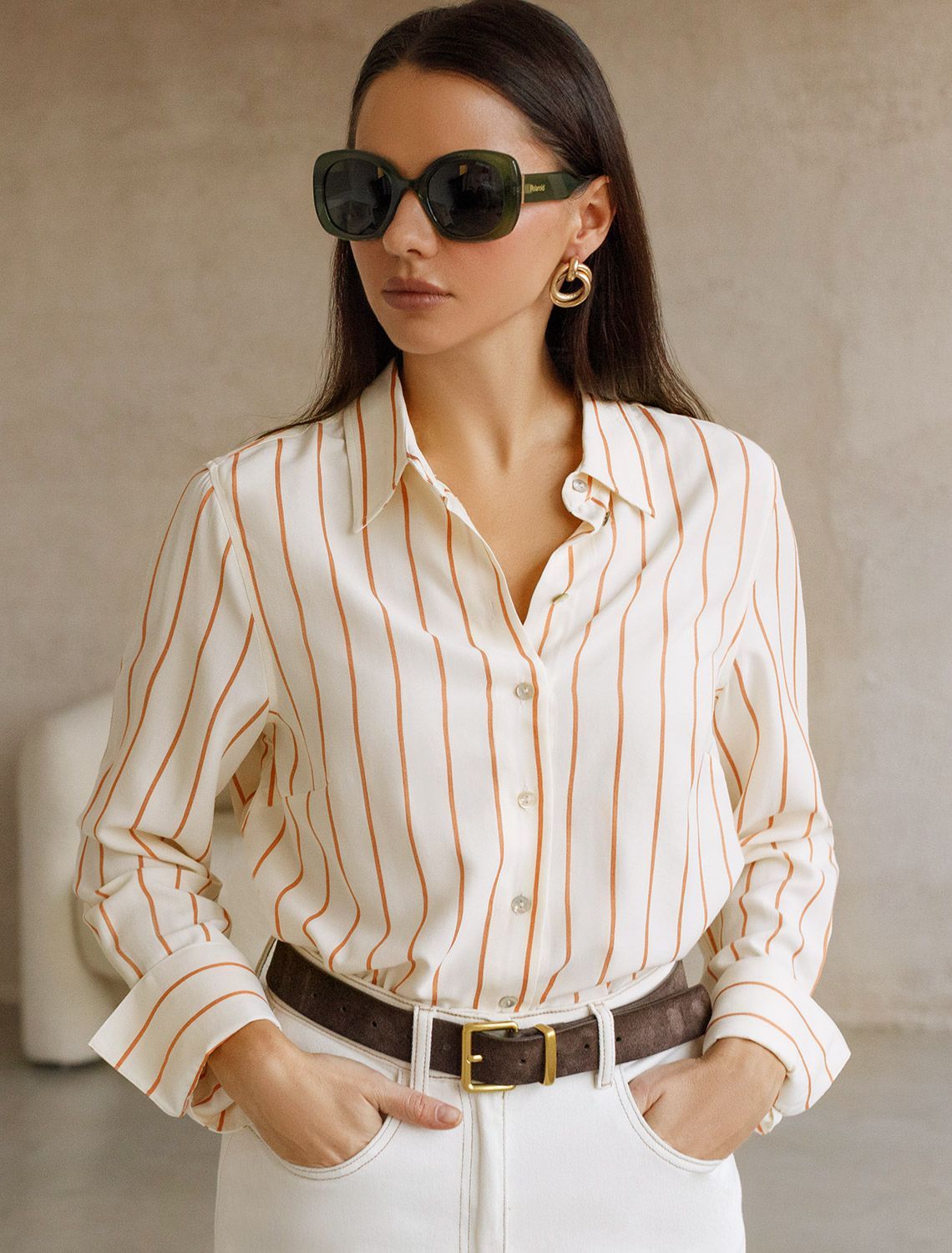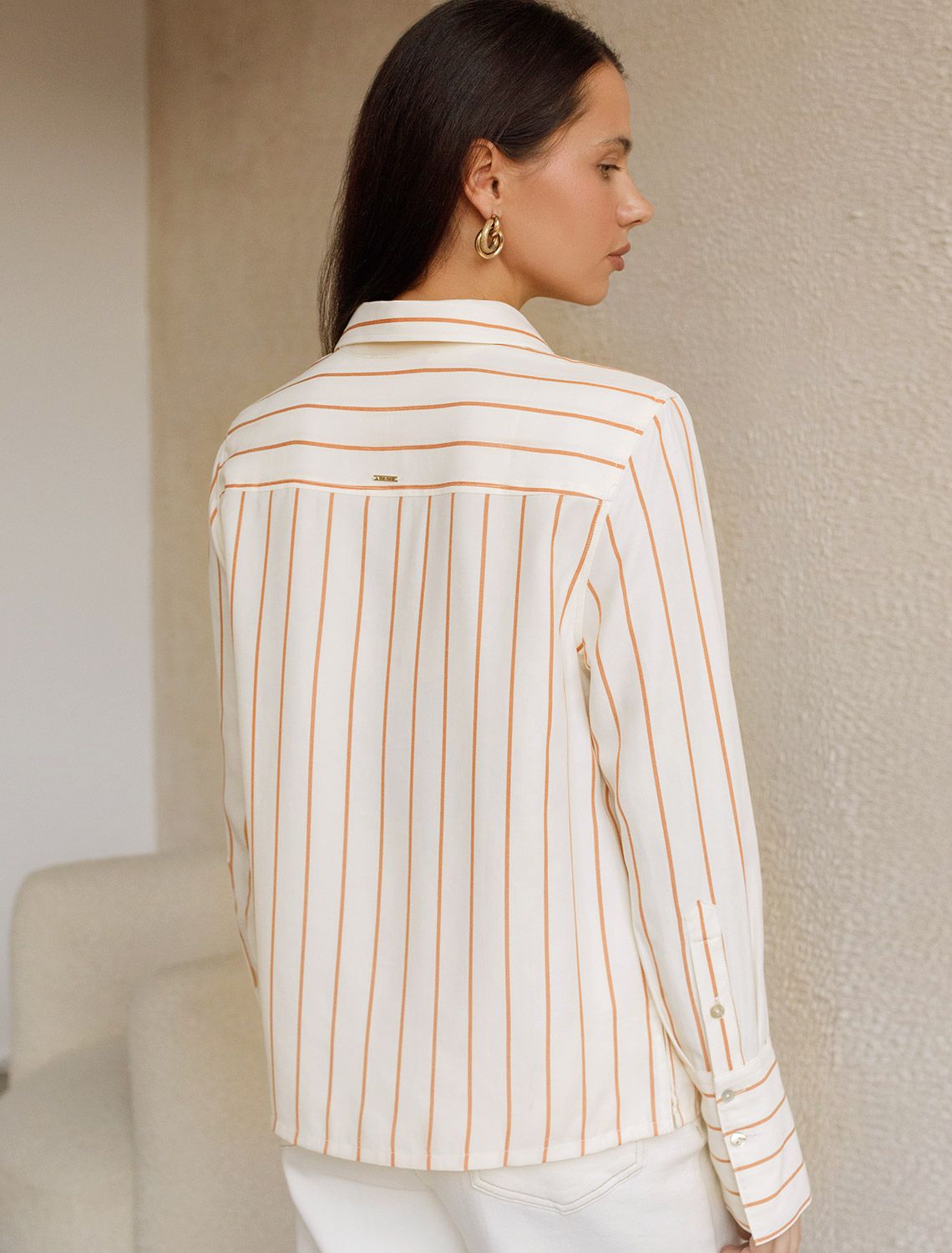 Блузка свободного силуэта молочного цвета в коралловую полоску из хлопка идеально подходит для теплого сезона и порадует всех, кто ценит комфорт и стиль. Натуральный материал плотностью 108 Г/м2 обеспечивает приятное ощущение на теле и хорошо пропускает воздух, что особенно важно летом и весной. Блузка с длинным рукавом обладает высокой износостойкостью, что позволяет сохранять привлекательный внешний вид даже при регулярном использовании. Ткань хорошо держит форму после стирки и надолго остается аккуратной. Эластан в составе обеспечивает отличную посадку на любую фигуру. Классическая рубашка с отложным воротником и широкими манжетами формирует актуальный образ, подходящий как для работы, так и для повседневных прогулок. Пуговицы на планке добавляют практичности и позволяют регулировать степень открытости, что также способствует созданию различных вариантов ношения, например, в качестве второго слоя. Прямой свободный крой рубашки не сковывает движения и создает ощущение легкости, а принт в полоску делает образ выраженным, современным и подчеркивает индивидуальность. Повседневная блузка гармонично сочетается с любыми низами, что делает ее универсальной частью гардероба.