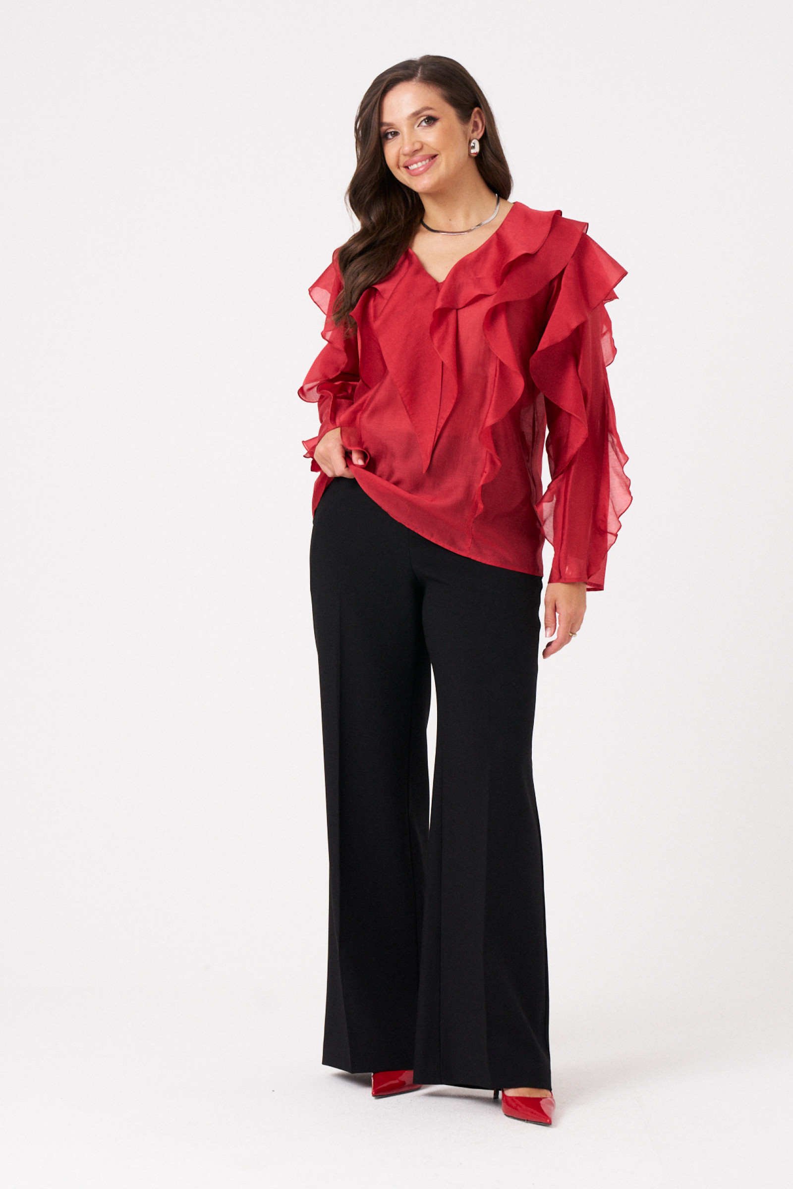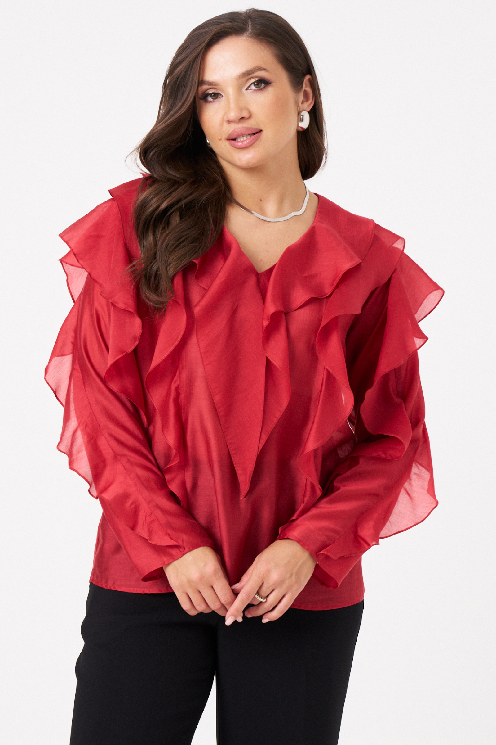Эта блузка терракотового оттенка идеально подойдет для повседневных образов — она сочетает комфорт, стиль и женственность, позволяя выглядеть элегантно в любой ситуации.