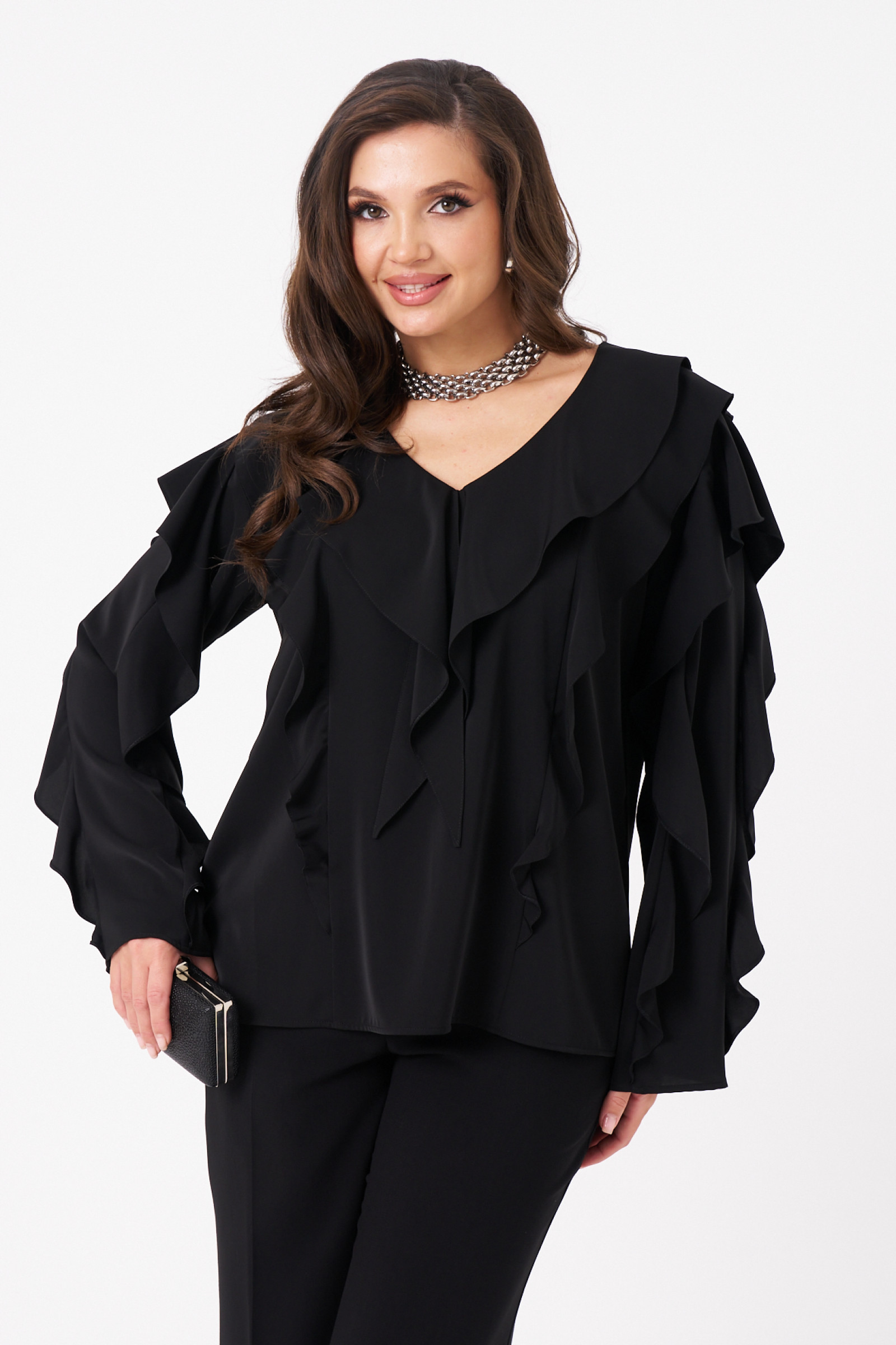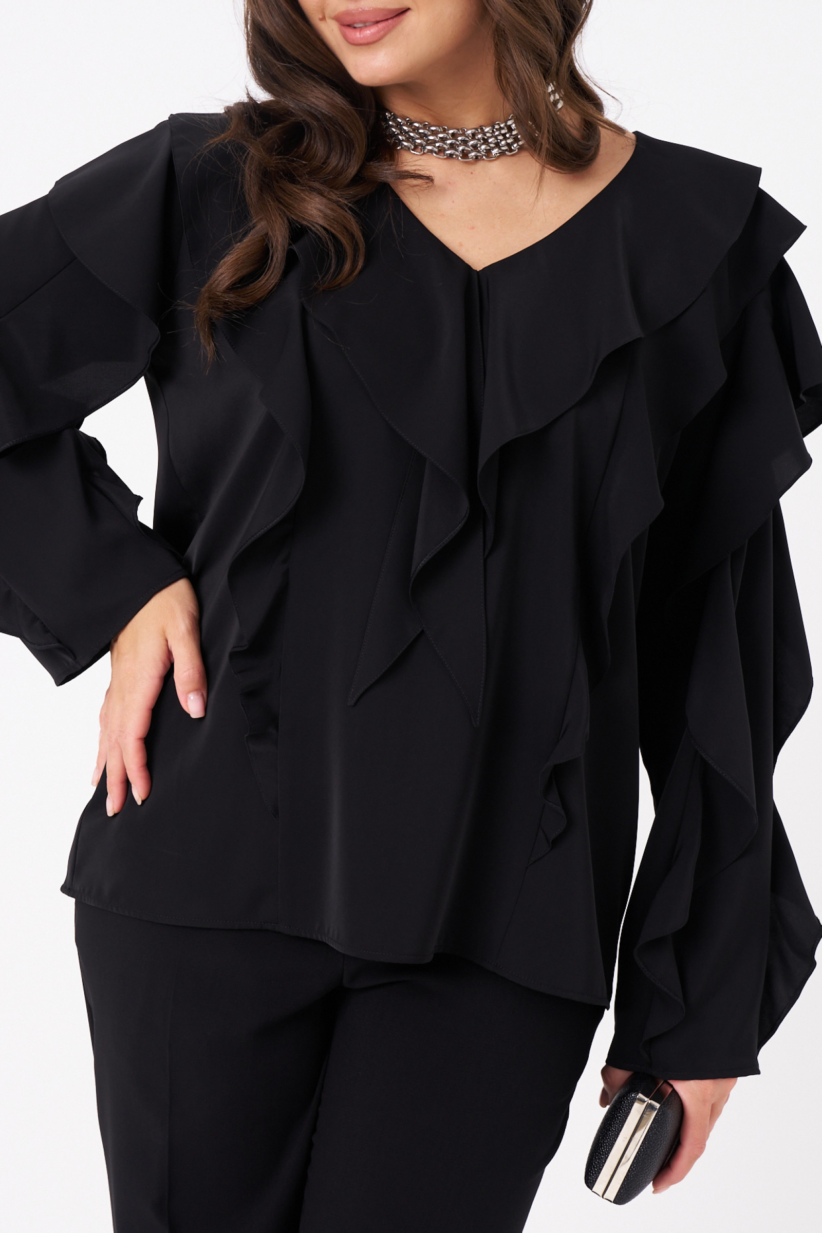 Эта блузка чёрного оттенка идеально подойдет для повседневных образов — она сочетает комфорт, стиль и женственность, позволяя выглядеть элегантно в любой ситуации.