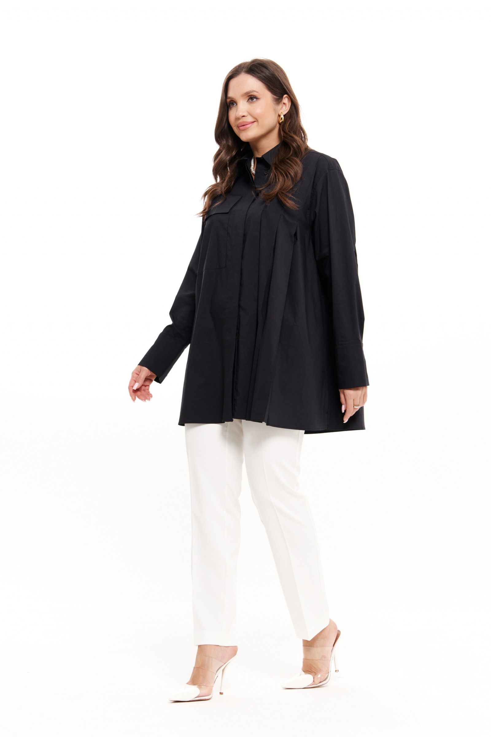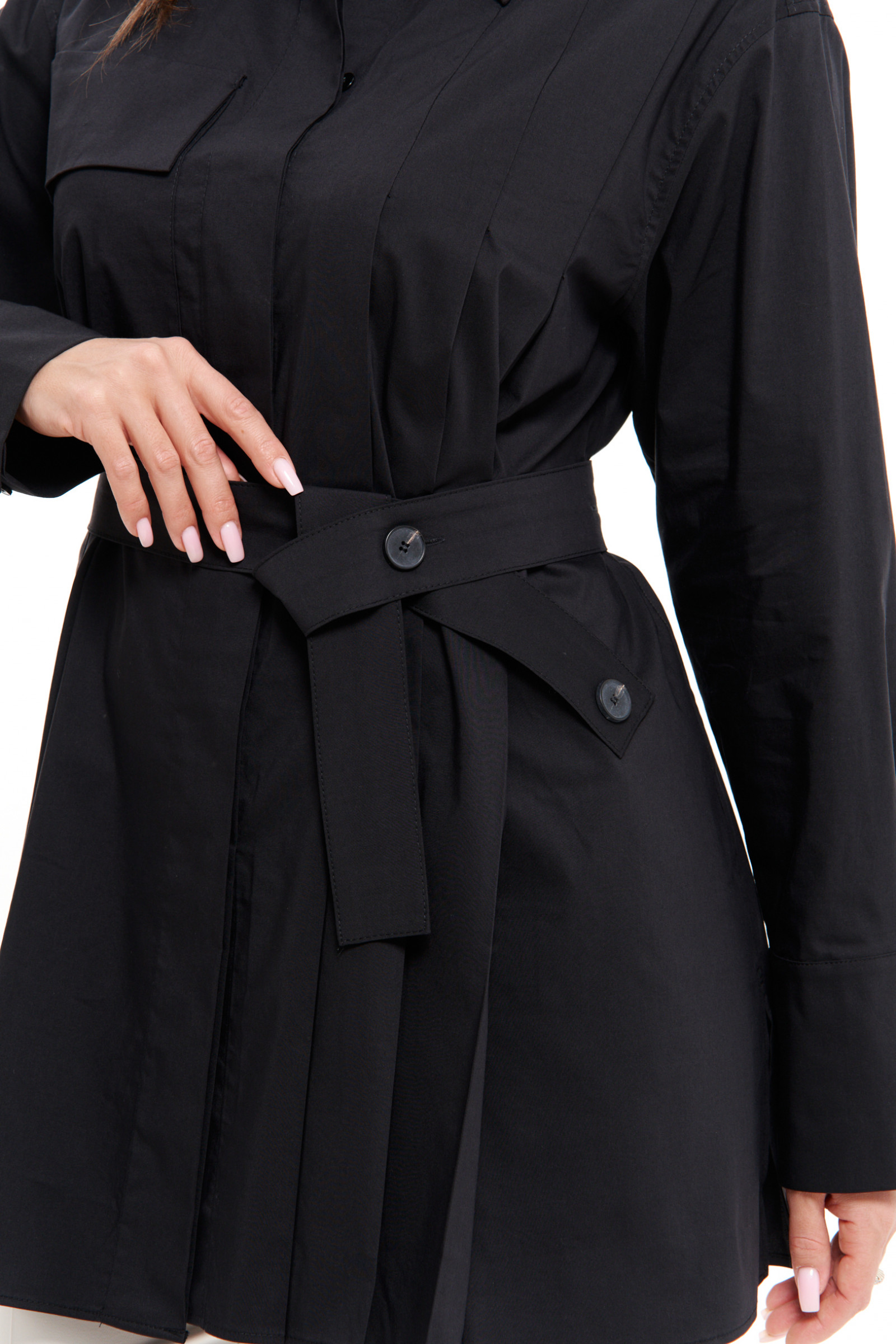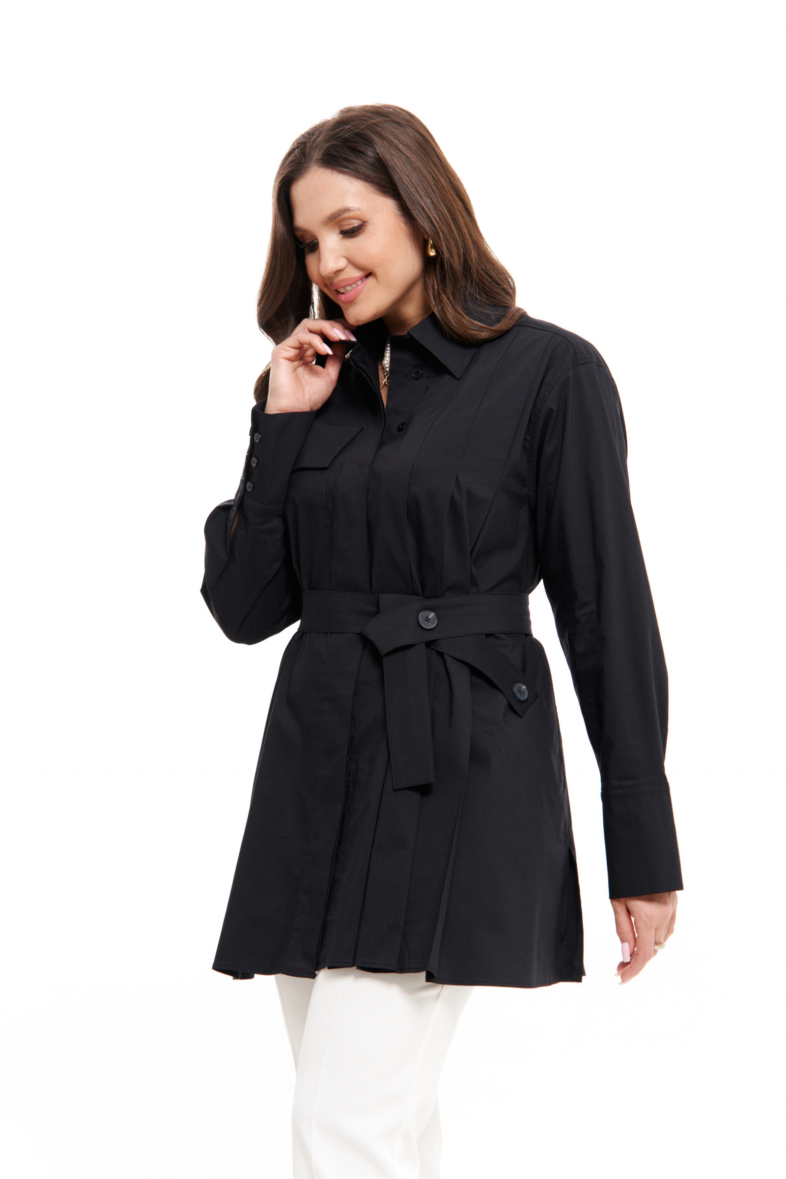 Блузка с длинным рукавом поможет вам создать деловой или нарядный образ за считанные минуты. Визуально, модная блуза похожа на тунику или короткое платье, идеально садится по фигуре. Широкие манжеты завершают длинный рукав, отложной воротник, зрительно удлиняют шею, клапан на груди, имитирует карман. Чтобы подчеркнуть линию талии, модельеры предусмотрели пояс, выполненный из основной ткани. Хлопковая блузка мягкая на ощупь и приятная к телу. В ней комфортно в теплый день. В холодное время года блуза женская длинная хорошо будет смотреться в сочетании с верхней одеждой. Вы можете купить стильную женскую блузу в размерах 42-50 для демисезонной погоды
