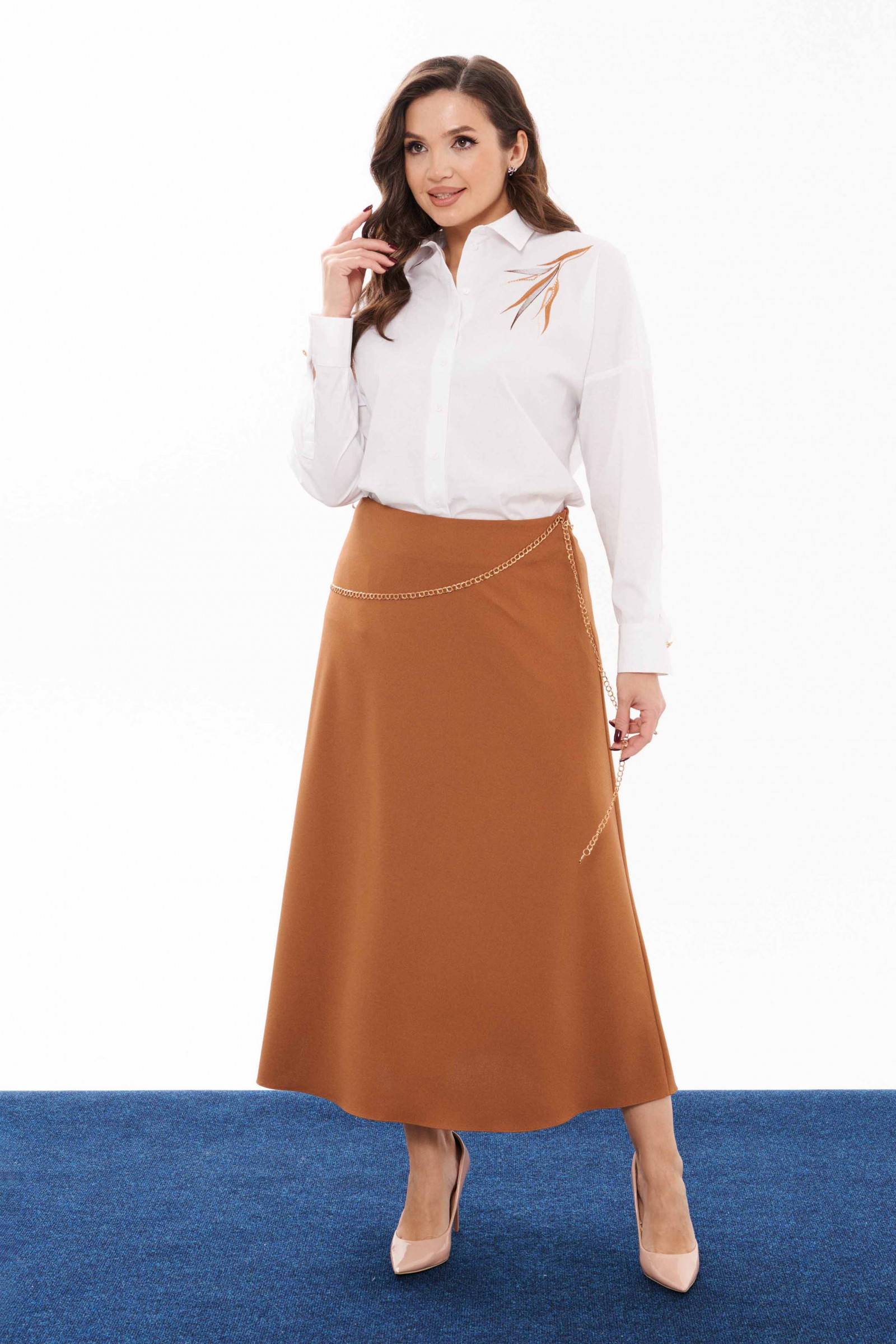 Блузка женская из смесовой ткани c большим содержанием хлопка для повседневной носки. Блузка прямого силуэта. Перед имеет дизайнерскую вышивку в виде листиков. Застежка на обметанные петли и пуговицы. Спинка имеет кокетку и складку. Горловина обработана рубашечным воротником с отрезной стойкой. Линия плеча спущена. Рукава втачные длинные, низ рукава обработан притачной манжетой с застежкой на обметанную петлю и пуговицу. Такой креативный вариант блузки обязательно привлечет к вам внимание. Блузка станет вашей любимой вещью в гардеробе.