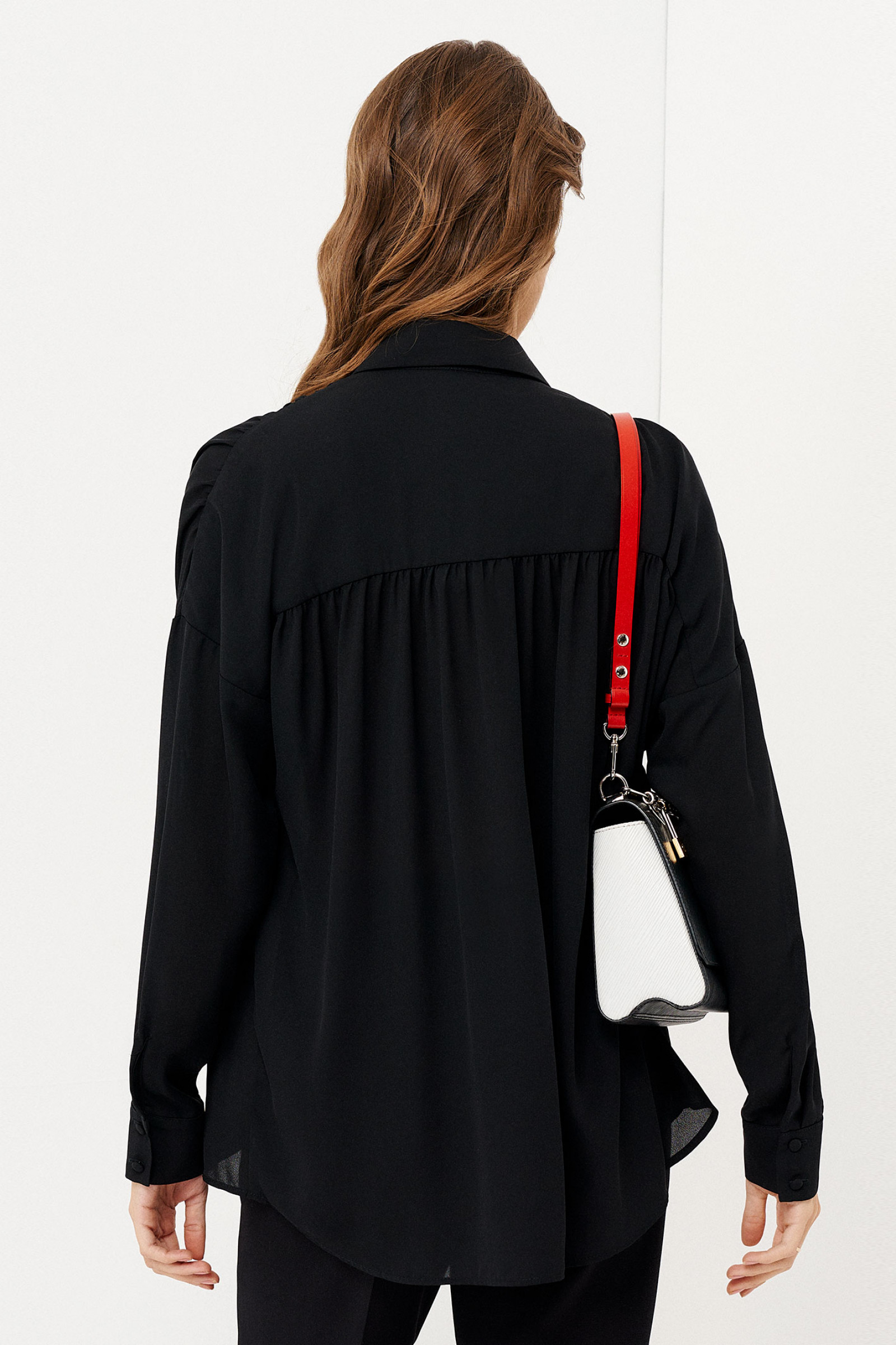46 Блузка: Длина изделия - 73.5см, Длина переда от высшей плечевой точки до низа - 74.5см, Длина рукава - 47.5см, Обхват шеи - 47см, Ширина плеча - 26.5см, Ширина по низу - 66см, Ширина под проймой - 62см, Ширина рукава - 21.3см;
