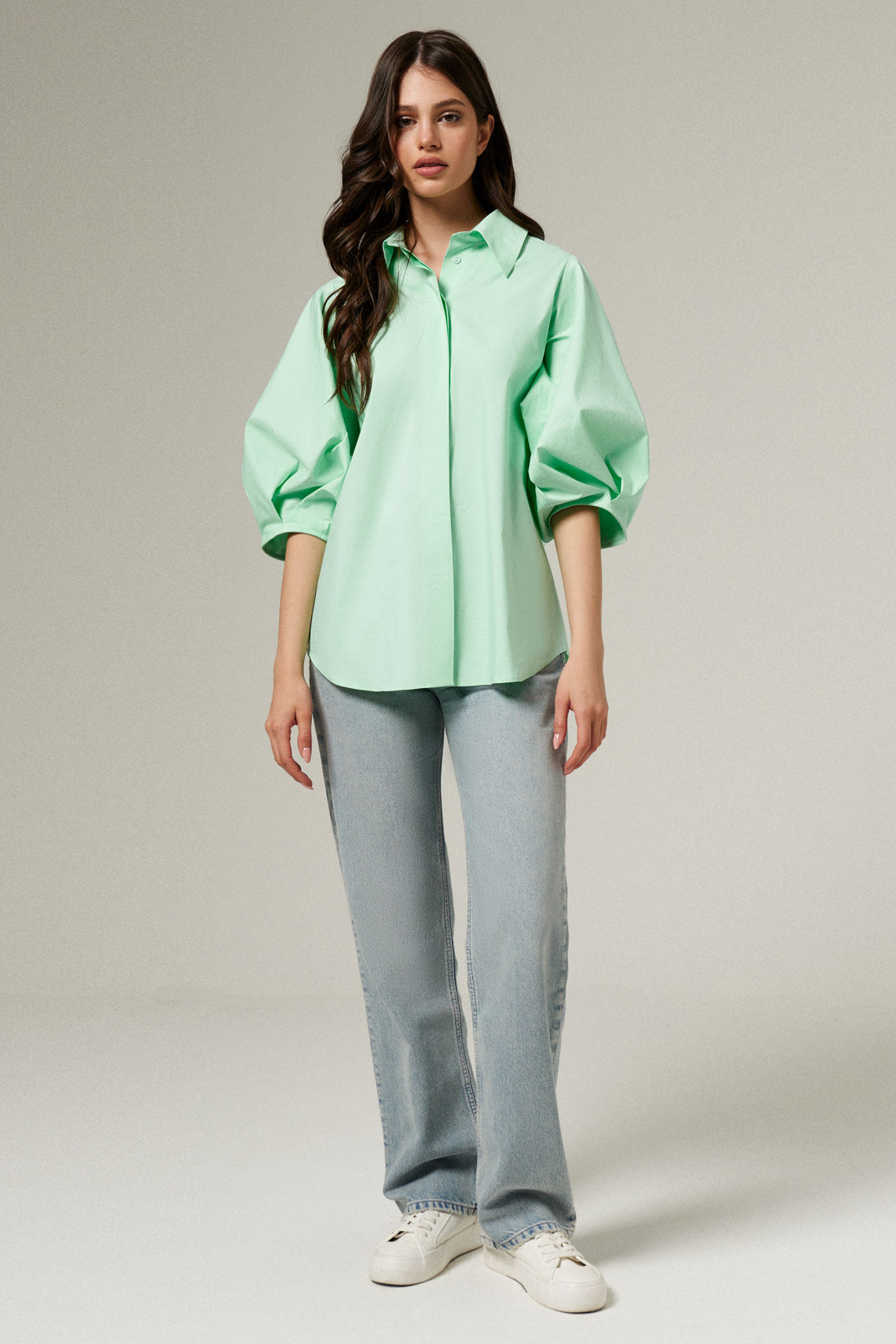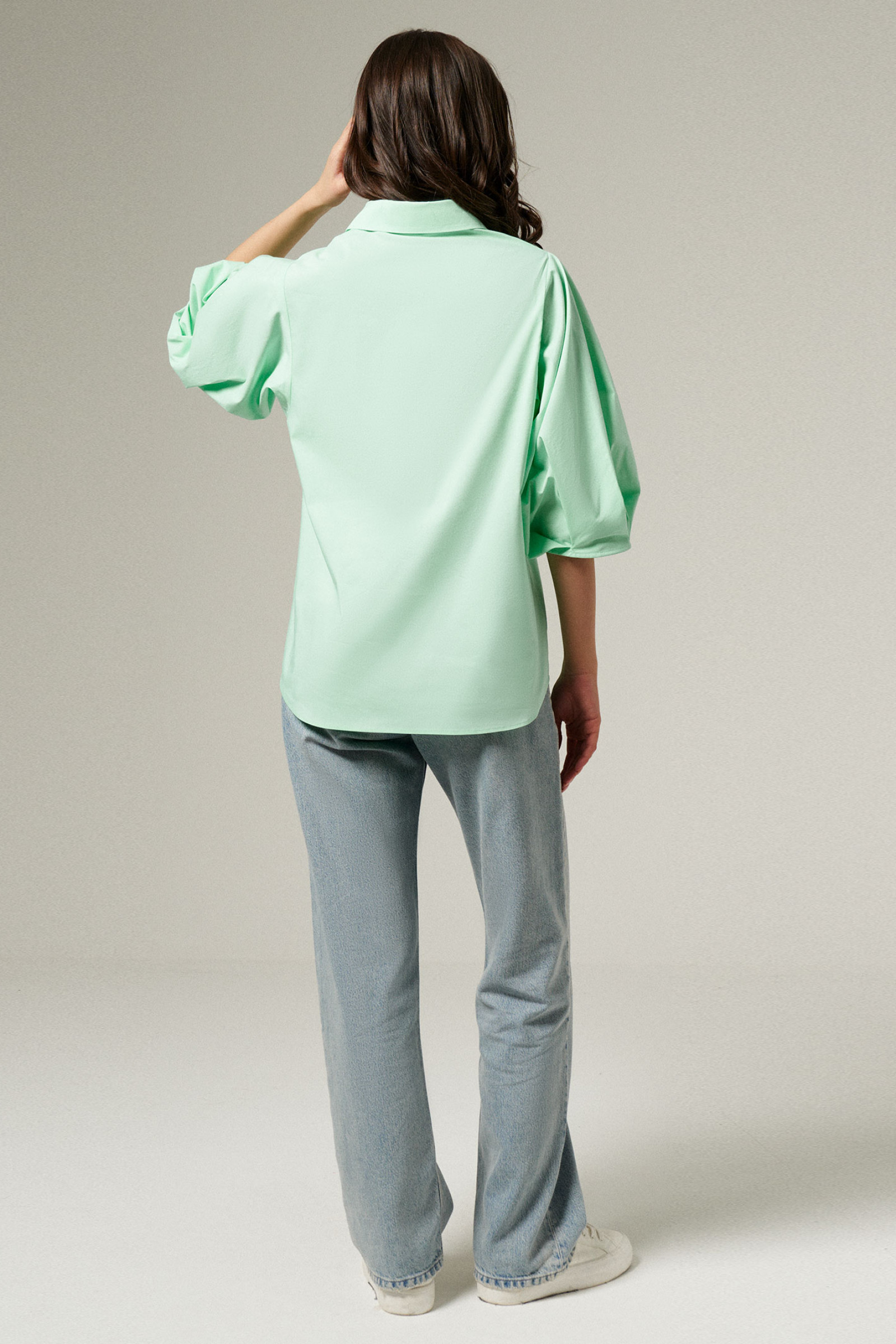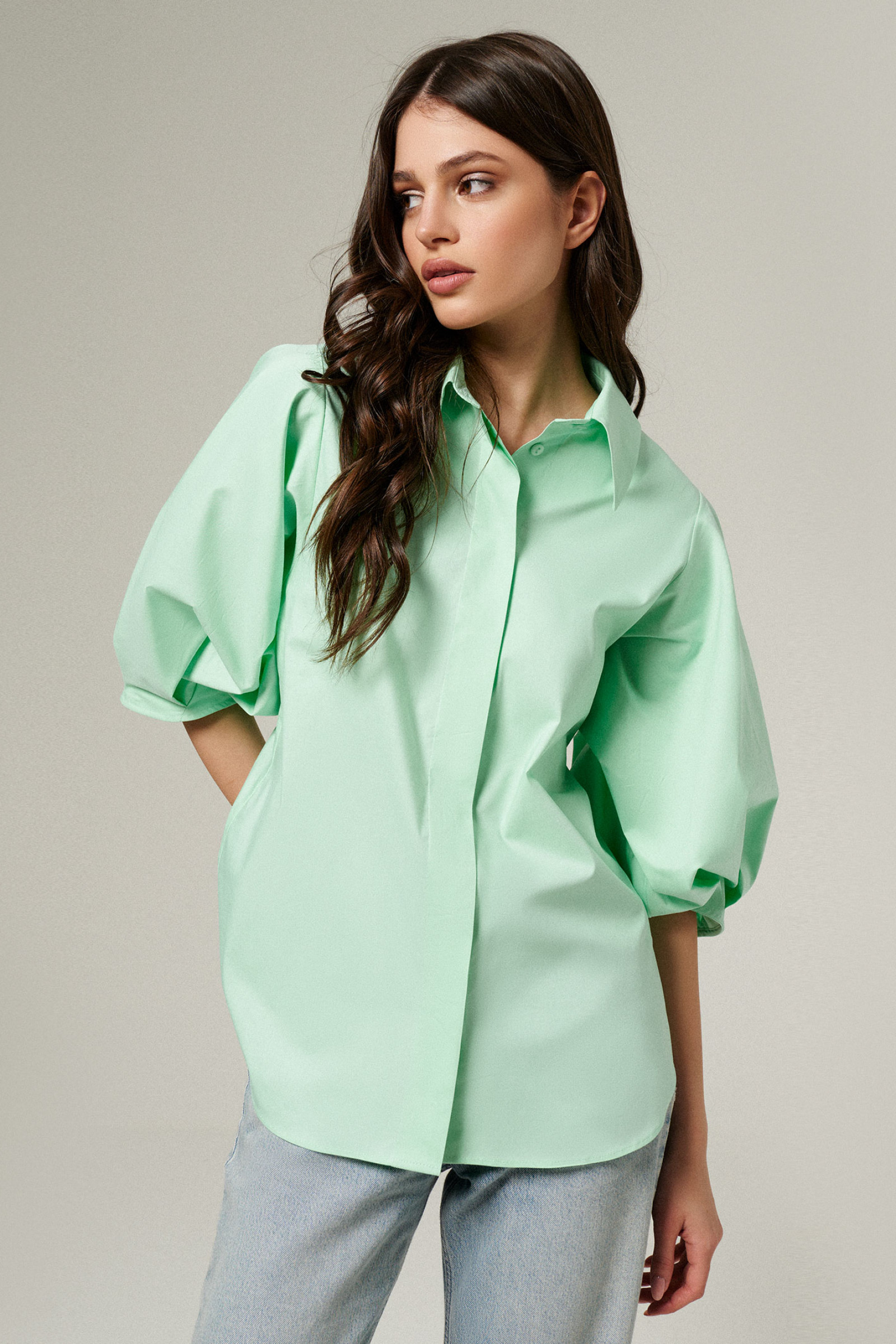 50 Блузка: Длина изделия - 68см, Длина рукава - 41см, Ширина плеча - 10.9см, Ширина по груди - 58см, Ширина по низу - 62см, Ширина рукава - 30.9см;