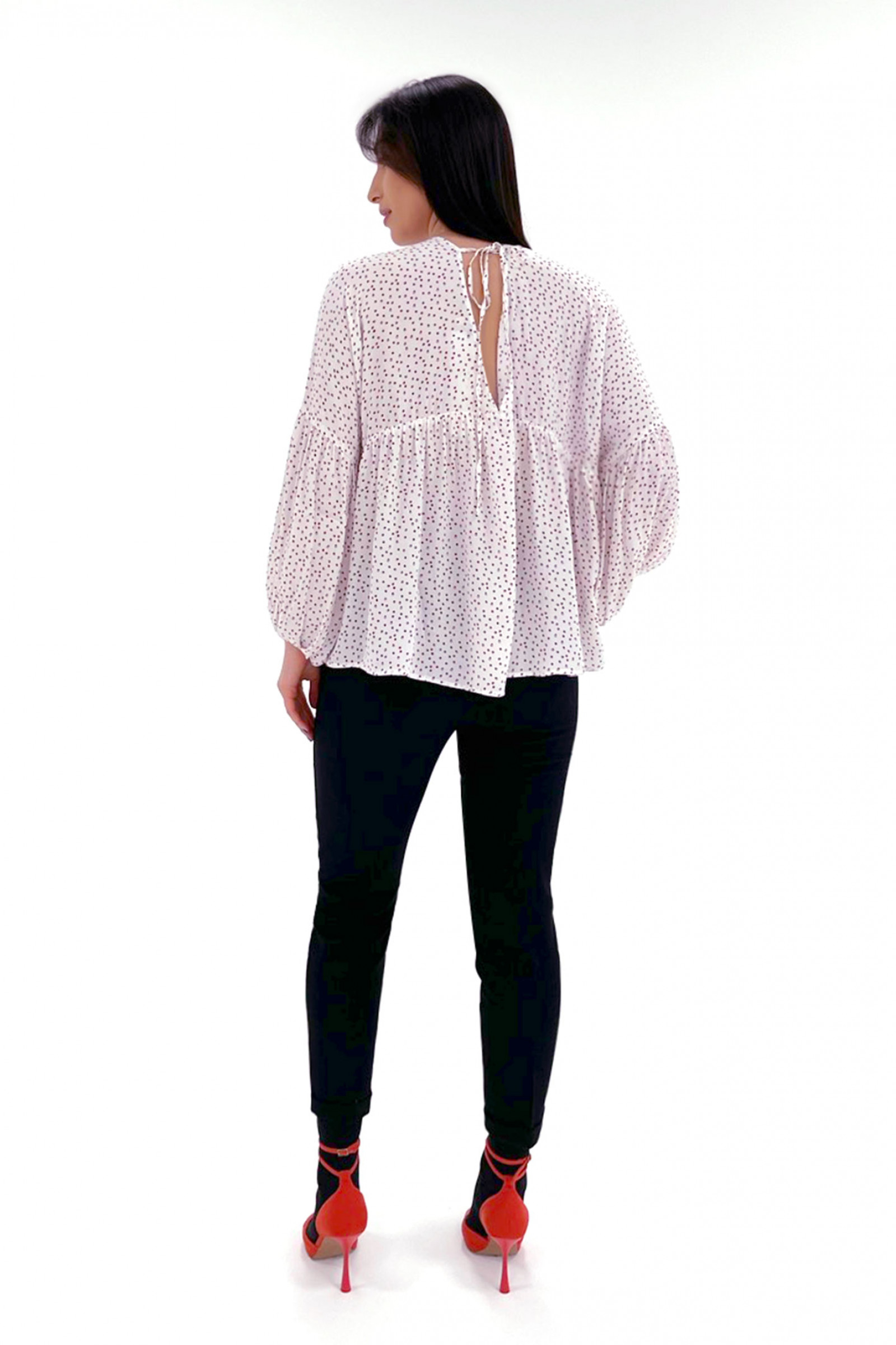 46 Блузка: Длина изделия от высшей плечевой точки до низа - 67см, Длина рукава - 34см, Ширина плеча - 34.4см, Ширина по груди - 75см, Ширина рукава - 24.8см;