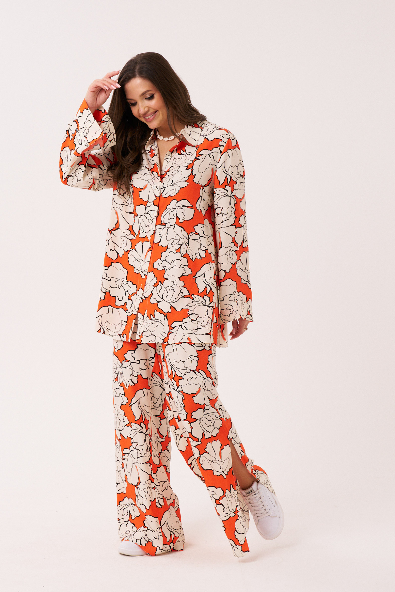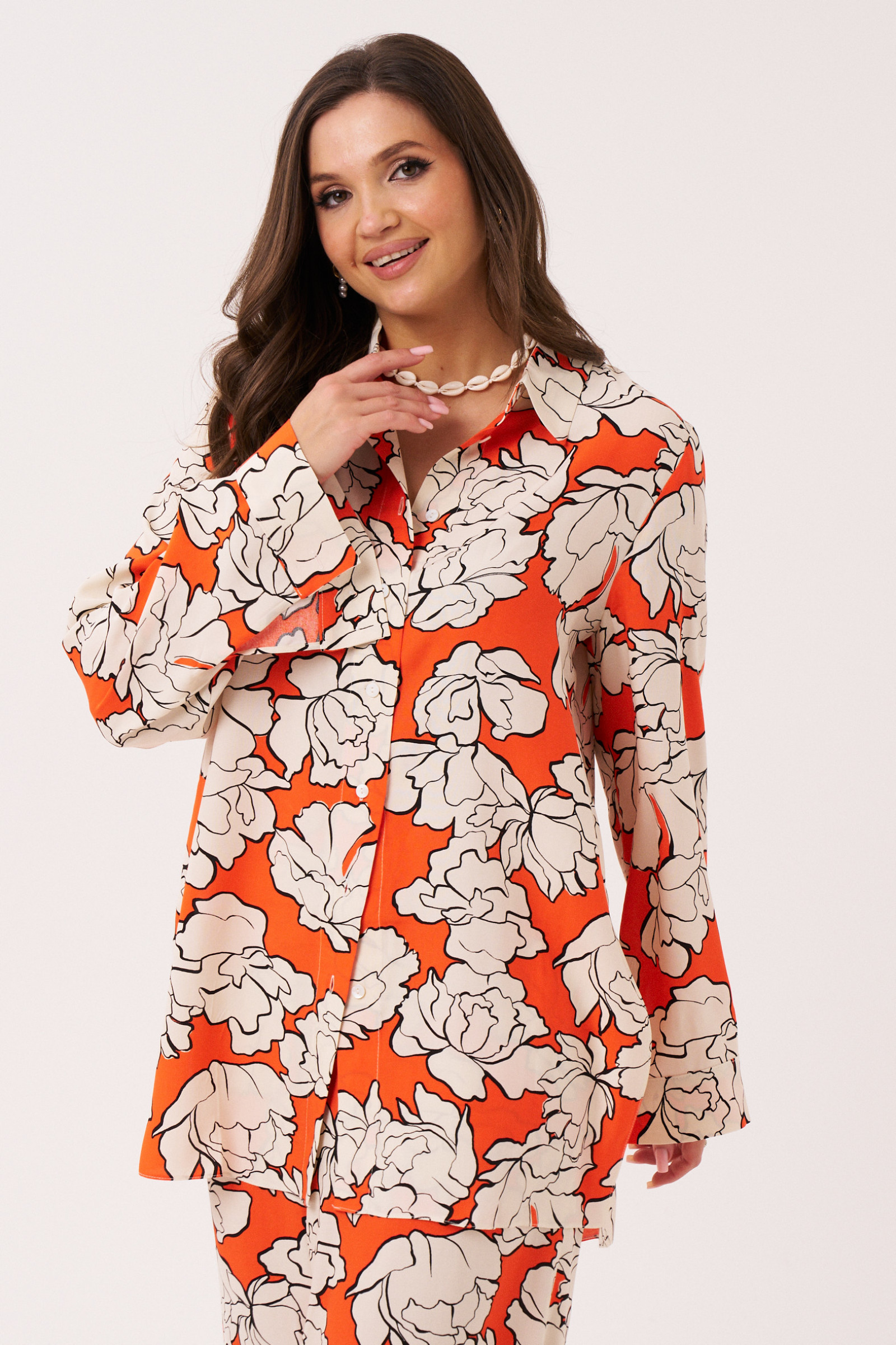 46 Блузка: Длина изделия - 76см, Длина рукава - 60см, Обхват шеи - 44см, Ширина плеча - 13см, Ширина по груди - 56см, Ширина по низу - 63см, Ширина рукава - 19.5см;
