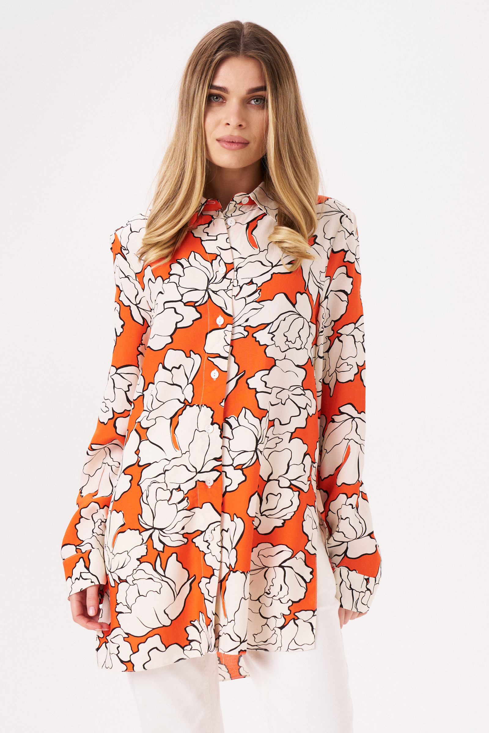 42 Блузка: Длина изделия - 76см, Длина рукава - 60см, Обхват шеи - 43см, Ширина плеча - 13см, Ширина по груди - 52см, Ширина по низу - 59см, Ширина рукава - 18.5см;