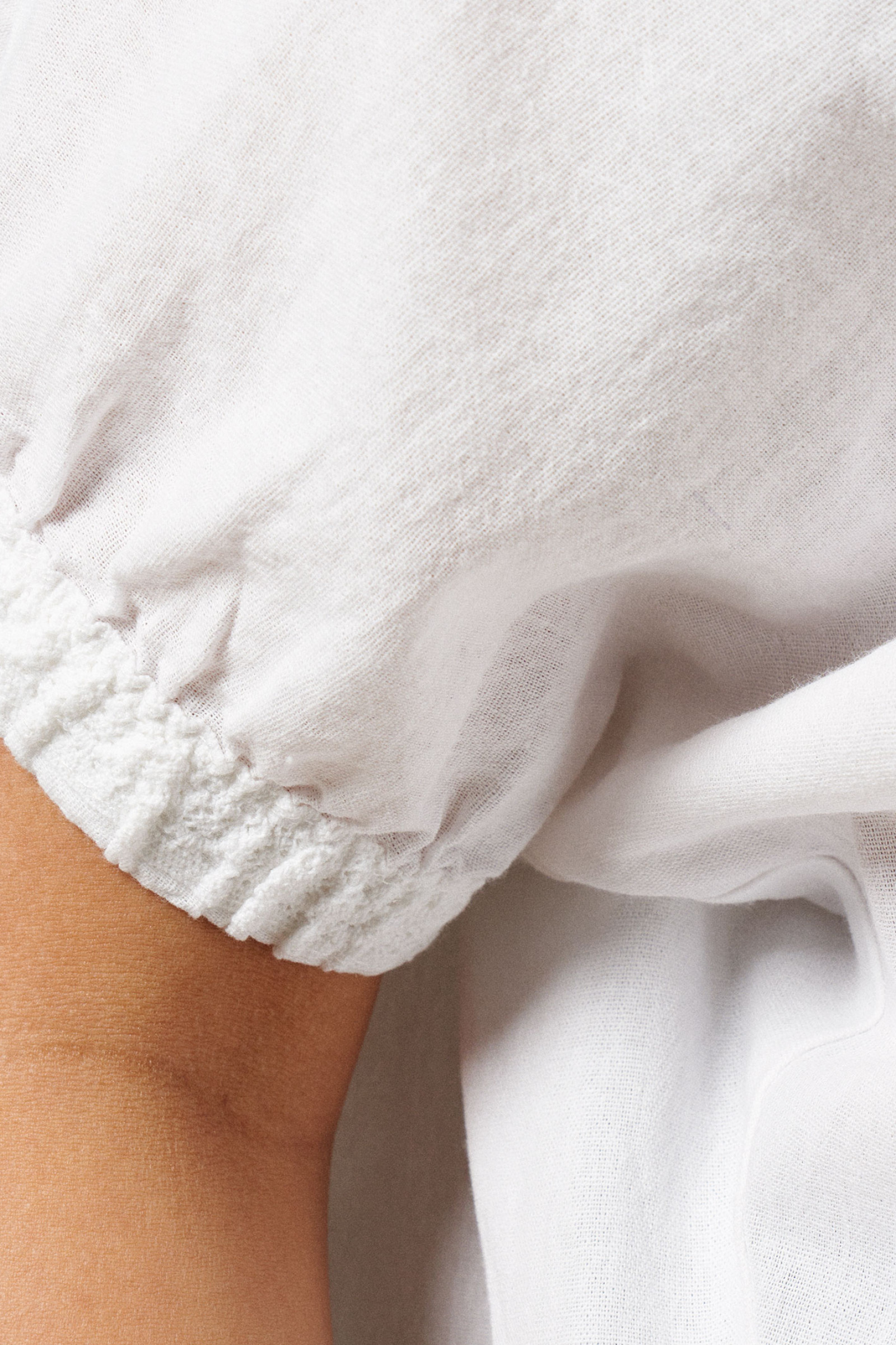 Блузка женская из хлопчатобумажной ткани для повседневной носки прямого силуэта. Рукава цельнокроеные, низ рукава на резинке, длина чуть выше локтя. Очень стильная и практичная блузка на каждый день, в ней вы будете чувствовать себя комфортно, а главное она отлично подчеркнет все ваши достоинства.