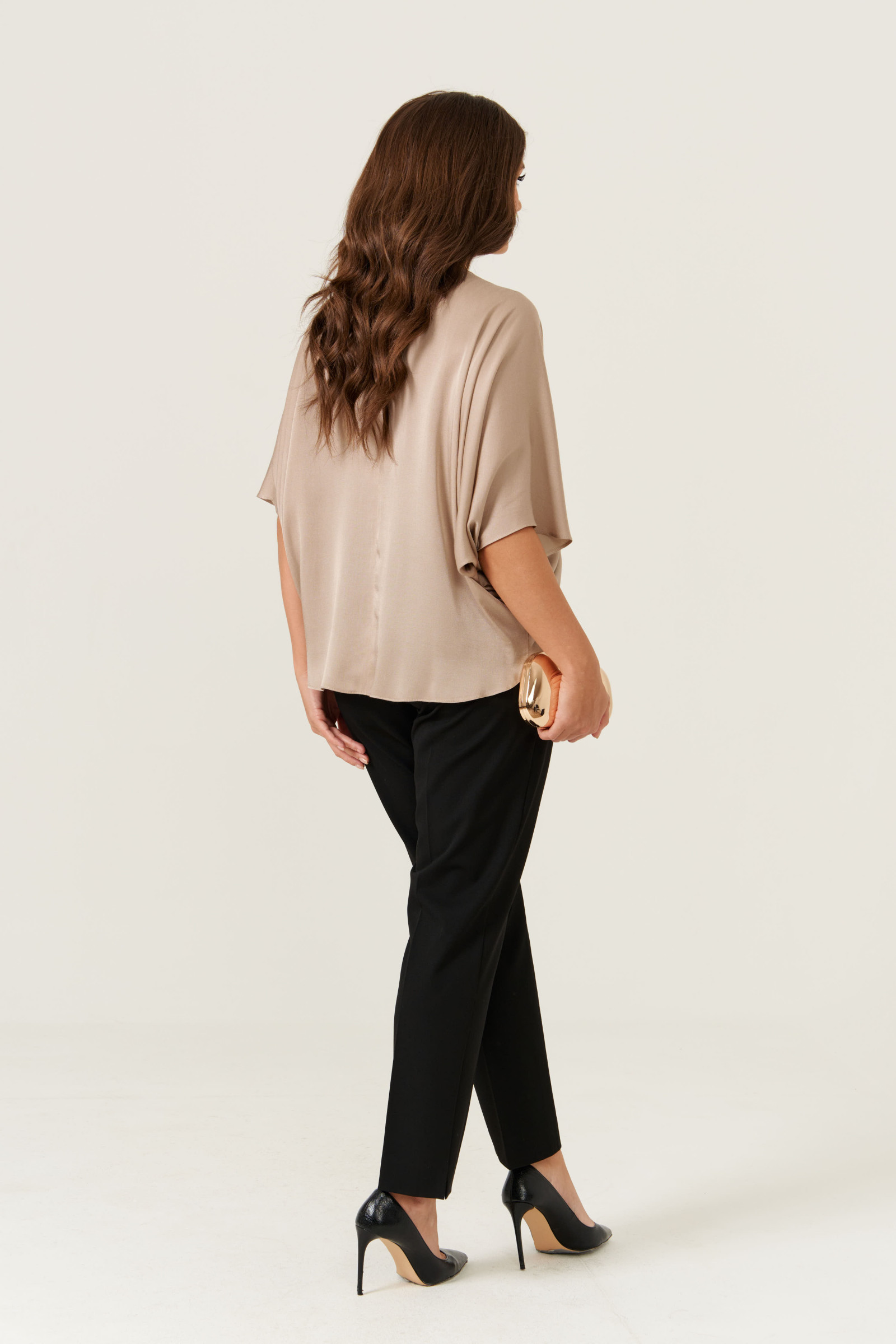 Блуза женская для повседневной носки и праздничных случаев. По спинке имеется средний шов с потайной застежкой на потайную пуговицу. Изделие интересного дизайнерского кроя. Рукава втачные длинной чуть выше локтя. Горловина круглая, длина блузы классическая. Очень стильная блузка, в которой вы обязательно будете чувствовать себя комфортно, и вы всегда будете в центре внимания.