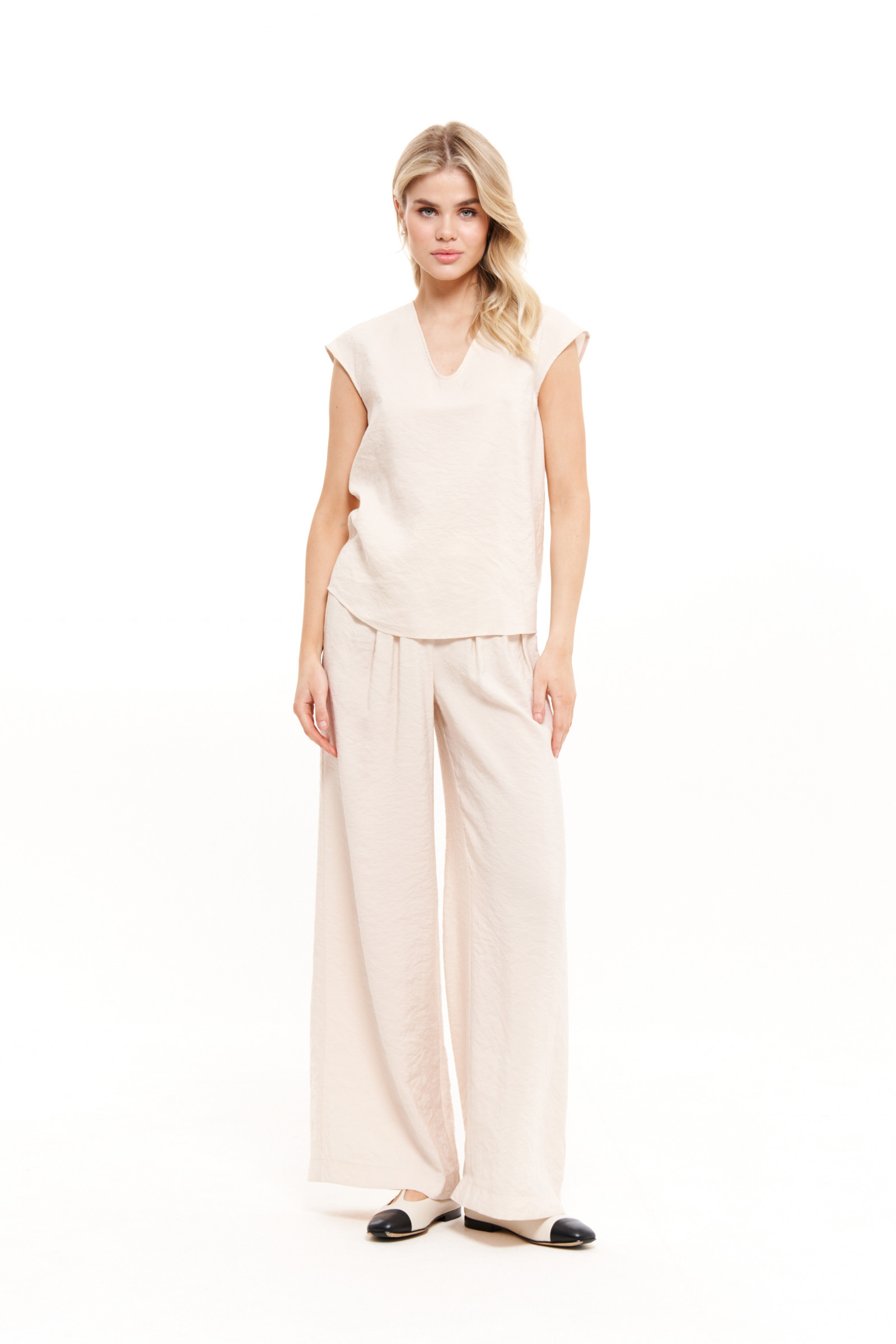 Базовый дизайн и нейтральные оттенки делают эту блузу женственной и универсальной, а отсутствие рукавов добавляет образу легкость. Это идеальный вариант для тех, кто ценит классический стиль, но хочет выглядеть свежо и современно.