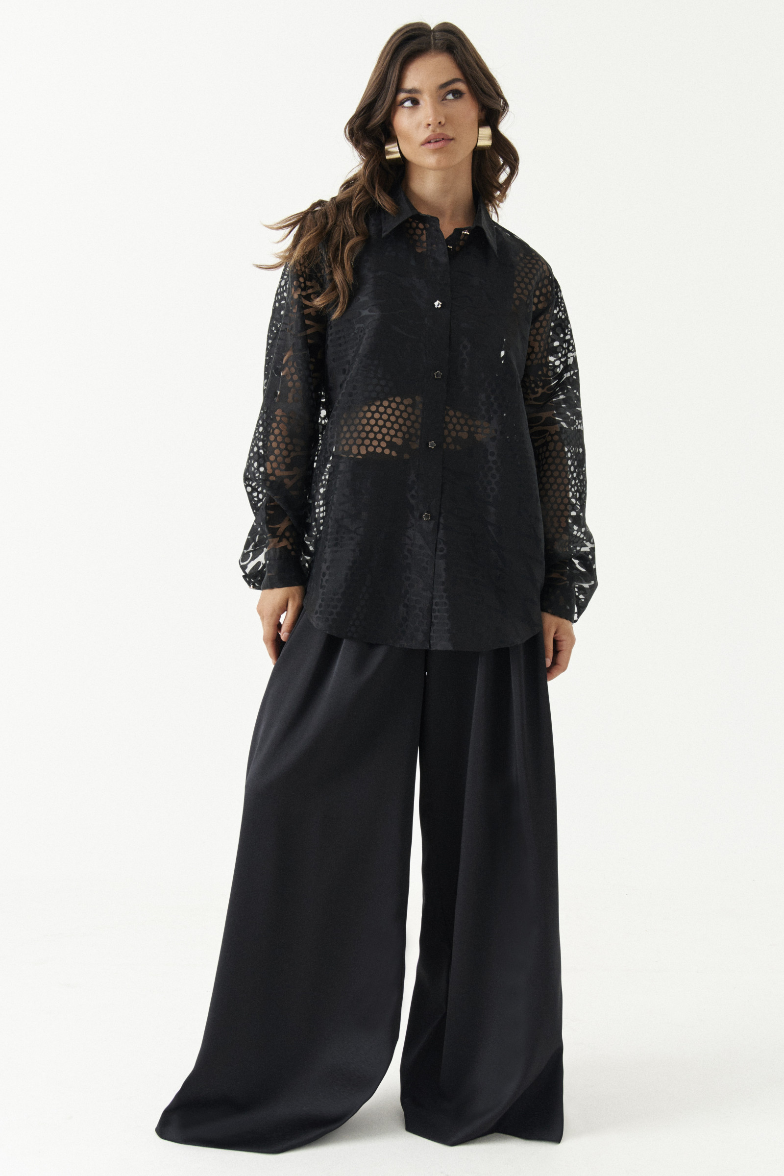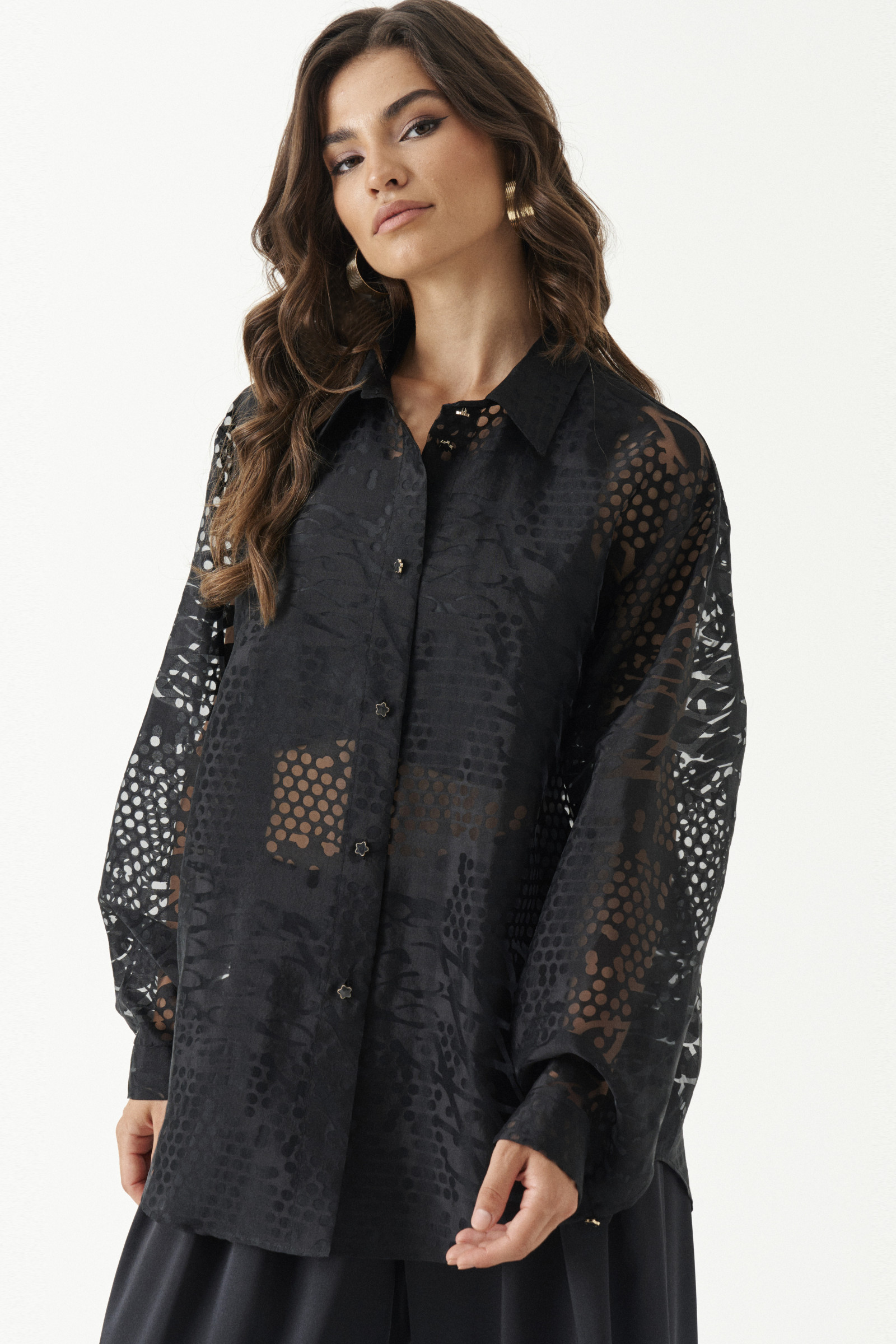 Блуза женская из легкой ткани для повседневной носки. Изделие прямого силуэта классической длины. Блуза с фронтальной застежкой на пуговицы, Воротник отложной рубашечный. Рукав длинный втачной оформлен притачной манжетой. Спинка с отрезной кокеткой. Красивая и очаровательная блузка станет вашим фаворитом.