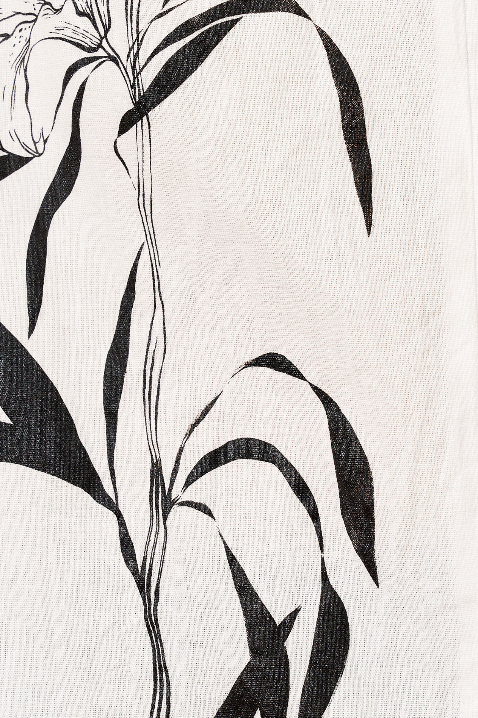 Элегантная длинная блузка женская с цветочным принтом - красивая вещь, которая по достоинству займет место в вашем гардеробе. Черно-белая лилия на тонком стебле, тянущимся вверх, визуально стройнит фигуру.